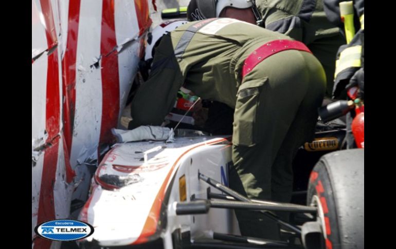 Deportes | El equipo médico ha sugerido mantenerlo en observación 'Checo' Pérez permanecerá en hospital hasta el lunes Este domingo se sometió a algunos exámenes médicos adicionales, informó la escudería Sauber en un comunicado Por: REUTERS 29 de mayo de 2011 - 06:52 hs Un comisario ayuda a Sergio Pérez, tras sufrir un accidente durante la última parte de la sesión de clasificación. EFE / - Aparatoso accidente conmociona a Checo -Vettel logra la pole position en el GP Mónaco -Sergio Pérez da las gracias al “Cristo de los Milagros” MÓNACO, FRANCIA (29/MAY/2011).- El piloto mexicano de Sauber Sergio Pérez permanecerá en el hospital hasta el lunes después de sufrir un grave accidente en la clasificación del Gran Premio de Mónaco, dijo el domingo su equipo de la Fórmula Uno. El piloto, de 21 años, sufrió una conmoción cerebral y un hematoma en un muslo en el accidente del sábado, pero no presentó lesiones graves. Sauber dijo en un comunicado que el piloto pasó una buena noche en el hospital Pricess Grace de Mónaco y se sometió a algunos exámenes médicos adicionales el domingo por la mañana. "El equipo médico ha sugerido mantenerlo en observación del hospital durante otra noche y le someterán a otra exploración el lunes", indicó la escudería. Pese a su accidente a la salida del túnel, a Pérez se le otorgó el décimo puesto en la clasificación para la parrilla de salida después de ingresar en la Q3 de la clasificación por primera vez. El japonés Kamui Kobayashi es el único piloto de Sauber en la carrera. Temas Automovilismo Fórmula 1 Sergio Pérez Gran Premio de Mónaco Lee También Verstappen domina el caos y gana el sprint en Austin Max Verstappen se lleva la pole para el Sprint del GP de Estados Unidos Gobierno de CDMX sorteará pases dobles para asistir al Gran Premio de la Fórmula 1 Norris domina en Austin, pero la sorpresa la da Hülkenberg Recibe las últimas noticias en tu e-mail Todo lo que necesitas saber para comenzar tu día Registrarse implica aceptar los Términos y Condiciones
