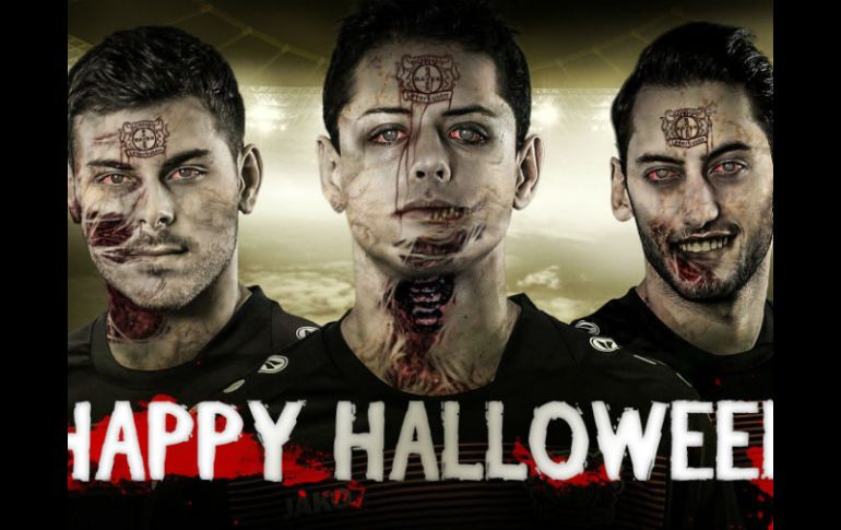 LEVERKUSEN, ALEMANIA (31/OCT/2016).- El futbolista mexicano Javier “Chicharito” Hernández apareció junto a Hakan Calhanoglu y Kevin Volland en una publicación del Bayer Leverkusen celebrando el "Halloween".En la publicación del cuadro alemán, los tres jugadores aparecen en modo "zombie" y el mensaje "Happy Halloween", en la cuenta oficial de Twitter.Así fue la publicación de Las Aspirinas en su red social: