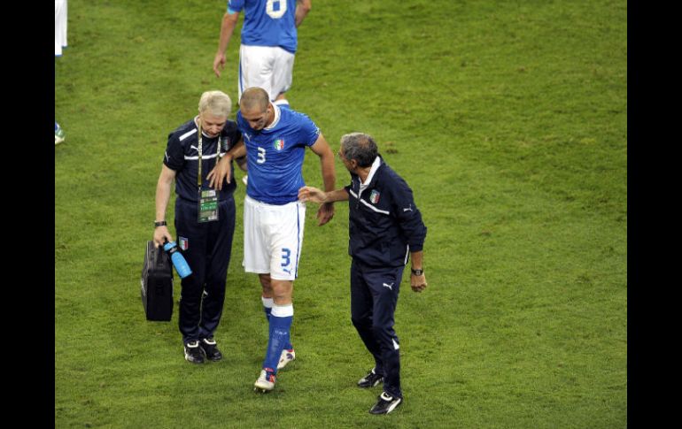 Deportes | El jugador del Juventus se lesionó durante el encuentro ante la República de Irlanda Chiellini en duda para los cuartos de final por lesión ''Necesita tiempo para recuperarse. Necesita pruebas para precisar el tiempo necesario que necesitará para poder jugar'', dijo Castellaci Por: EFE 19 de junio de 2012 - 09:44 hs Giorgio Chiellini sale de la cancha con ayuda de los médicos en el partido de la Eurocopa 2012 contra Irlanda. EFE / GDYNIA, POLONIA (19/JUN/2012).- Giorgio Chiellini, central de la selección italiana de fútbol, es duda para el partido de cuartos de final que disputará el conjunto transalpino el próximo día 24 por culpa de un problema muscular en un muslo. El jugador del Juventus se lesionó durante el encuentro ante la República de Irlanda y tuvo que ser sustituido en el minuto 57 por su compañero Leonardo Bonucci. Hoy, el médico de la selección, Enrico Castellaci, confirmó que podría perderse el choque ante el equipo que acabe líder en el grupo D. "Necesita tiempo para recuperarse. Necesita pruebas para precisar el tiempo necesario que necesitará para poder jugar", dijo Castellaci desde la concentración de Cracovia. Mientras, Prandelli tiene esperanzas de poder recuperar a un jugador que es clave en el centro de la defensa. Antes del inicio de la Eurocopa Chiellini se lesionó y llegó justo a tiempo para jugar el primer duelo frente a España. Ahora vuelve a recaer y podría tener problemas para jugar su cuarto partido del torneo. Italia no está teniendo suerte con los centrales. Hasta ayer, otro que parecía que iba a ser fijo, Andrea Barzagli, no pudo debutar. Incluso estuvo a punto de ser descartado para jugar la Eurocopa, pero Prandelli decidió aguantar la recuperación del jugador del Juventus. Tanto Chiellini como Barzagli sólo han coincido sobre el campo 57 minutos. Cuando uno de los dos no ha estado, Bonucci o De Rossi se han encargado de suplirles. Italia vive en tensión de nuevo por culpa de uno de los puestos en el centro de la defensa. Temas Futbol Internacional Selección de Italia Eurocopa 2012 Recibe las últimas noticias en tu e-mail Todo lo que necesitas saber para comenzar tu día Registrarse implica aceptar los Términos y Condiciones