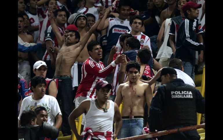 Deportes | La medida es de acción inmediata para el próximo partido del rebaño, ante América Chivas expulsará a porristas por hechos violentos La medida es de acción inmediata para el próximo partido del rebaño, el Clásico Nacional contra el Club América Por: EL INFORMADOR 23 de marzo de 2014 - 15:49 hs GUADALARA, JALISCO (23/MAR/2014).- En un comunicado de prensa, el Club Deportivo Guadalajara, anunció que expulsará a todo aquel miembro credencializado de los grupos de animación que resulte responsable por los hechos violentos ocurridos en la tribuna del Estadio Jalisco durante el Clásico Tapatío. La medida es de acción inmediata para el próximo partido del rebaño, el Clásico Nacional contra el Club América, a realizarse en el Estadio Omnilife. El Guadalajara, anunció también en su boletín que "realizará lo necesario para que de manera tajante, estos individuos no puedan volver a ingresar a ninguno de los estadios del Futbol Mexicano, además de brindar su apoyo para consignar a todo aquel que resulte responsable por las lesiones a la Fuerza Pública", esto con base en videos, fotografías y testimonios de los testigos de los hechos. "Club Deportivo Guadalajara S.A. de C.V. no tendrá tolerancia alguna para la violencia, por lo tanto se extienden y ponen a disposición de las autoridades correspondientes todas las facilidades para dar con los causantes de estos actos violentos para que sean consignados y procesados de acuerdo a la ley", cierra el comunicado. El INFORMADOR / ALAN PRODRÍGUEZ Temas Chivas Futbol Mexicano Clásico Tapatío Clásico nacional Liga MX Clausura 2014 Recibe las últimas noticias en tu e-mail Todo lo que necesitas saber para comenzar tu día Registrarse implica aceptar los Términos y Condiciones