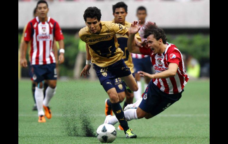 Deportes | Un error del portero Palacios da vida al Guadalajara en la eliminatoria al empatar 1-1 Chivas rescata el empate en casa Un error del portero Palacios da vida al Guadalajara en la eliminatoria al quedar empatados a un gol Por: EL INFORMADOR 12 de mayo de 2011 - 20:02 hs LEA EL MINUTO A MINUTO DE ESTE PARTIDO ZAPOPAN, JALISCO (12/MAY/2011).- Un claro error del portero Alejandro Palacios le dio vida el Guadalajara en la eliminatoria, al aceptar el gol del empate al minuto 88. En los últimos 20 minutos ejerció Chivas toda su fuerza ofensiva y Omar Arellano realizó por sector derecho un potente disparo 'picado' y el esférico se escurrió entre las manos del arquero universitario. Antes, en un contragolpe y aprovechando un titubeo defensivo del Guadalajara, Efraín Velarde había puesto adelante a los Pumas al minuto 51 al rematar de “palomita” un centro a segundo poste, haciendo inútil la estirada de Luis Michel. Unos 41 mil aficionados apoyaron con todo a los anfitriones para sacar un resultado que les da vida de cara al encuentro de 'vuelta', donde necesitan ganar por cualquier marcador para estar en la final; a Pumas le bastará con el triunfo o el empate. Pareció que el cuadro 'felino' jugó de local en los primeros 45 minutos, mientras Chivas se vio superado y hasta pasivo, en tanto el árbitro Paul Enrique Delgadillo brindó su show con dos expulsiones y decisiones polémicas. Pumas exhibió mejor actitud, con más derroche físico para marcar y recuperar el balón, mejor accionar ofensivo y más cerca del gol, ante un cuadro tapatío superado en la media cancha y por lógica su claridad a la ofensiva. El defensa central Marco Antonio Palacios desaprovechó la primera acción de gol visitante en el minuto 13, al rematar con la cabeza en solitario pero sin dirección a la portería de Luis Ernesto Michel. Con la 'garra' de los universitarios continuaron las acciones y fue hasta el minuto 27 cuando se originó la segunda oportunidad de anotación. En tiro de esquina por derecha el canterano Luis Fuentes remató sólido con la testa, en el fondo rechazó Michel con la rodilla izquierda, el esférico quedó en el área y Erick Torres, en su intento por cubrir el balón, impidió con falta al argentino Martín Bravo hacer el remate y aunque los universitario pidieron penalti, el silbante no la concedió. En el minuto 34 amonestó Delgadillo al portero tapatío, el capitán Héctor Reynoso reclamó y aparentemente insultó al auxiliar uno Marvin Torrentera, situación por la cual el juez central mostró la tarjeta roja directa al defensa central. El técnico José Luis Real tuvo que mover sus piezas y sacó al 'Cubo' Torres e ingresó al defensa central y seleccionado nacional juvenil Kristian Alvarez, quien al minuto 40 remató con la cabeza para anidar el esférico en la meta de Alejandro Palacios, pero el silbante lo anuló por supuesta falta del juvenil sobre el paraguayo Darío Verón. David Cabrera fue la figura en los últimos minutos de este primer periodo con disparo potente en el minuto 40 que Luis Ernesto apenas sacó por encima de su travesaño. Cabrera recibió cartón preventivo en el 45 y ya en tiempo de reposición cometió una ligera falta sobre Omar Arellano y el silbante compensó la expulsión de Reynoso al sacar raudo la segunda tarjeta preventiva al canterano y por consiguiente la roja. Así terminó el primer tiempo, donde Paul Delgadillo se robó el show con la pena máxima que no vio, el gol anulado a Chivas y las dos expulsiones. Pésimo trabajo del silbante. En igualdad numérica de jugadores comenzó el segundo tiempo, con unos rojiblancos más ofensivos pero de repente un descuido defensivo de los de casa cambió el rumbo del partido. Tras un saque rápido de banda por derecha al delantero paraguayo Dante López, éste sobre línea final centró a la llegada de Efraín 'Chispa' Velarde, quien con la marca de Alberto Medina realizó a placer remate con la cabeza para inaugurar el marcador al minuto 52. Si bien Patricio Araujo generó peligro con potente disparo que salió por poste derecho, en el minuto 54, los visitantes fueron mejores por su mejor actitud, entrega, garra y espíritu triunfal. En los últimos 20 minutos se generó toda la presión de Chivas y más cuando en los diez finales ingresó Adolfo Bautista, mientras que los visitantes intentaron sin claridad contragolpear. Cuando todo parecía que los auriazules obtendrían su primer triunfo de visita sobre los rojiblancos en los últimos 29 años, la 'Pina' Arellano tomó el balón con recorrido por derecha y con marca de Jehu Chiapas realizó potente disparo de media distancia que antes de llegar al arquero pegó sobre el césped artificial y después del bote se deslizó entre las manos del también llamado 'Pikolín'. Un soplo de vida recibió el 'Rebaño Sagrado', que buscó con intensidad el triunfo en los cinco minutos de reposición, pero todo quedó para definir el próximo domingo en Ciudad Universitaria. El árbitro Paul Enrique Delgadillo jugó su papel de protagonista en los primeros 45 minutos y enderezó el rumbo en el segundo periodo. Amonestó a Erick Torres (minuto 11) y Luis Ernesto Michel (34) y expulsó a Héctor Reynoso (34), por los locales, y mostró cartón preventivo a los auriazules David Cabrera (45), Luis Fuentes (62) y Efraín Velarde (65) y el rojo a Cabrera (45). Alineaciones: Chivas.- Luis Ernesto Michel, Omar Esparza (Jesús Sánchez, 71), Héctor Reynoso, Mario de Luna, Miguel Angel Ponce, Xavier Iván Báez, Patricio Araujo, Marco Fabián, Alberto Medina (Adolfo Bautista, 80), Omar Arellano y Erick Torres (Kristian Alvarez, 34). DT. José Luis Real. Pumas.- Alejandro Palacios, Luis Fuentes, Marco Antonio Palacios, Darío Verón, Efraín Velarde, Israel Castro, David Cabrera, Javier Cortés, Martín Bravo (Jehu Chiapas, 55), Juan Francisco Palencia (Emilio Orrantia, 74) y Dante López (Juan Carlos Cacho, 71). DT. Guillermo Vázquez. INFORMADOR / CON 
