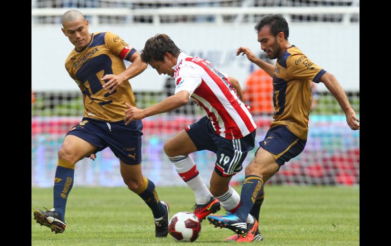 Deportes | En un partido entretenido los dos equipos buscaron el gol sin encontrarlo Chivas y Pumas no se hacen daño En un partido entretenido los dos equipos buscaron el gol sin encontrarlo Por: NTX 23 de septiembre de 2012 - 18:16 hs Verón y Chiapas tratan de despojar del balón al 'Cubo' Torres. MEXSPORT / GUADALAJARA, JALISCO (23/SEP/2012).- En el último suspiro, Guadalajara dejó ir el triunfo al fallar un penal cobrado por Luis Pérez, para así tener que conformarse con el empate sin goles ante unos Pumas de la UNAM sin puntería, en juego que cerró la fecha nueve del Torneo Apertura 2012 de la Liga MX. El también ex jugador de Monterrey estrelló en la base del poste su disparo desde el manchón penal, para así decretar la paridad, con la cual Chivas llegó a diez unidades que lo colocan en el sitio 13, en tanto los universitarios sumaron once en el undécimo. La mala puntería del aparato ofensivo de Pumas le impidió terminar con esa racha de 30 años sin vencer de visita a un Guadalajara que fue superado durante grandes lapsos del partido. Pese a su irregular actuación, cerca del final Chivas estuvo cerca de llevarse una victoria que no habría sido merecida ante el "clavado" de Erick Torres, que engañó por completo al silbante central. Dentro de la oscuridad por la que atravesó este juego durante el primer lapso hubo momentos de cierta luz en ambos lados, que hicieron más llevadero un primero tiempo muy pobre en todos los aspectos. La falta de capacidad de ambas escuadras para imponer condiciones en el terreno de juego generó un duelo trabado, con más lucha que talento futbolístico, con pocas ocasiones de gol. Sin ser mejores que su rival, los de casa fueron los primeros en generar peligro en un cabezazo de Jorge Enríquez, que pegó en la base del poste izquierdo, al minuto 23. Después de este susto, fueron los capitalinos los que fueron un poco más claros al frente y una falla del juez de línea les robó una gran oportunidad cuando el argentino Martín Bravo entró perfectamente para encarar a Luis Michel, pero la bandera levantada terminó con la jugada. Ya sobre el tiempo agregado, Javier Cortés se animó por la banda de la derecha para quitarse a dos hombres y mandar una diagonal retrasada para Bravo, quien no hizo un buen contacto y de derecha mandó su remate a un costado del poste derecho, cuando tenía para mucho más. Al darse cuenta que podían hacer mucho más de medio campo al frente, el cuadro "auriazul" buscó ser más ofensivo y tuvo los argumentos suficientes para terminar con el cero y llevarse el triunfo. Una vez más, Bravo tuvo la ocasión en un mano a mano con Michel, pero entre la defensa y el guardameta le robaron el esférico. Más tarde, su compatriota Emanuel Villa no aprovechó una gran jugada de Cortés que lo dejó solo dentro del área, donde el ex jugador de Cruz Azul, de frente, voló su remate cuando Michel ya estaba vencido. La respuesta de Chivas fue por medio de Jorge Enríquez, quien en primera instancia, dentro del área, sacó un disparo que se fue apenas por arriba del travesaño y posteriormente, un balón que con la cabeza prolongó para obligar a Alejandro Palacios a estirarse cuan largo es para evitar la caída de su marco. Lo mejor del partido llegó en los últimos minutos, en los que la visita tuvo el gol otra vez en los botines de Villa, quien de manera increíble, ya sin portero, voló una vez más el balón. Pero si esta falla fue increíble, más la del silbante Mauricio Morales al señalar como penal una falta inexistente sobre Erick Torres, al minuto 92. El encargado de cobrarlo fue Luis Pérez, quien no hizo un buen contacto con el esférico, que se estrelló en la base del poste izquierdo, para decretar así la paridad sin goles. El arbitraje estuvo a cargo de Mauricio Morales, quien había tenido una labor regular que terminó siendo mala en los últimos minutos, al señalar ese inexistente penal sobre el "Cubo" Torres. Amonestó a Héctor Reynoso (54) y a Patricio Araujo (70) por los de casa. Alineaciones: Guadalajara.- Luis Michel, Omar Esparza, Kristian Alvarez, Héctor Reynoso, Miguel Ponce, Jorge Enríquez, Patricio Araujo, Luis Morales (Jesús Padilla, 58), Jesús Sánchez (Julio Nava, 84), Erick Torres y Rafael Márquez Lugo (Luis Pérez, 46). DT John van´t Schip (HOL). UNAM.- Alejandro Palacios, José Antonio García, Marco Palacios, Darío Verón, Luis Fuentes, Jehu Chiapas (Martín Romagnoli, 65), Efraín Velarde, Alfonso Nieto (Carlos Orrantia, 52), Javier Cortés, Martín Bravo (Luis García, 86) y Emanuel Villa. DT Mario Carrillo. Temas Chivas Futbol Mexicano Pumas de la UNAM Torneo Apertura 2012 Liga MX Lee También ¿Empate entre Cruz Azul y América? Esto pronostica la IA México, el número uno de Concacaf según ranking de la FIFA ¿Dónde ver EN VIVO el partido de J13 Cruz Azul vs América? ¿Dónde ver EN VIVO el partido de J13 Chivas vs Mazatlán? Recibe las últimas noticias en tu e-mail Todo lo que necesitas saber para comenzar tu día Registrarse implica aceptar los Términos y Condiciones