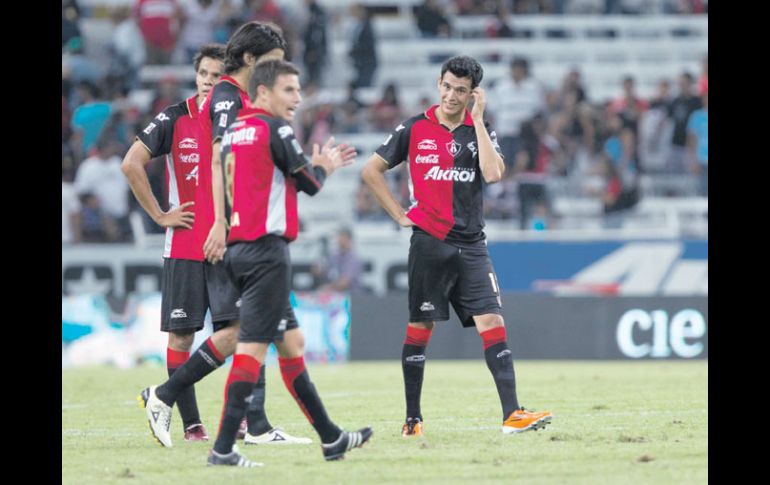 Los rojinegros lamentan el empate ante San Luis, anoche en el Estadio Jalisco por la fecha ocho del Apertura 2011. E. PACHECO /