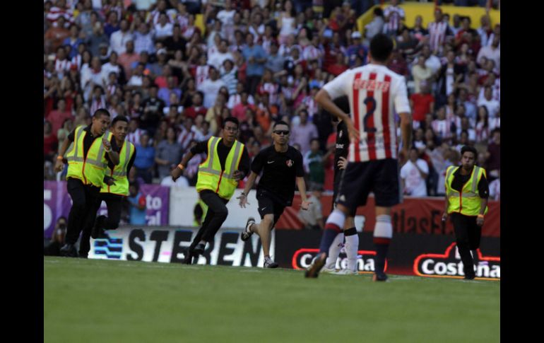 Deportes | El Ayuntamiento de Guadalajara argumenta que es por falta de medidas de seguridad Clausuran el Estadio Jalisco El Ayuntamiento de Guadalajara argumenta que es por falta de medidas de seguridad por invasión de cancha Por: EL INFORMADOR 17 de mayo de 2015 - 21:42 hs GUADALAJARA, JALISCO (17/MAY/2015).- El Ayuntamiento de Guadalajara procedió con la clausura del Estadio Jalisco luego del Clásico Tapatío, en donde la porra de Atlas invadió el terreno de juego durante el partido. Esto, informó el municipio por la obstrucción de pasillos y falta de medidas de seguridad por invasión de cancha. Corría el minuto 57 del encuentro de vuelta de Cuartos de Final entre Atlas y Chivas, que a la postre ganó 4-1 el Rebaño, cuando dos espontáneos saltaron a la cancha del coloso de la Calzada Independencia. El caos se apoderó minutos después, ya que decenas de 'barristas' de los Zorros invadieron el campo, por lo que el juego tuvo que detenerse durante unos 20 minutos. En un comunicado, el Ayuntamiento tapatío informó que elementos del Grupo Lobos, guardabosques, y policías pie tierra mantuvieron el control de los aficionados luego de que en el segundo tiempo del encuentro, una decena de barristas invadieran la cancha de futbol. En total, fueron 10 personas retenidas y puestas a disposición del Ministerio Público por propiciar el desorden e invasión de la cancha, y será esta autoridad quien determine la sanción aplicable a estas personas. Asimismo se reportan nueve lesionados, de los cuales tres son elementos de seguridad privada del propio estadio, y tres hombres pertenecientes a la barra del Atlas; los otros tres son civiles lesionados por otras causas y que no participaron en la trifulca en tribunas. Todos fueron canalizados a hospitales para su oportuna atención médica. Luego del encuentro, la directiva atlista vetó a su grupo de animación y, por su parte, el propietario del Guadalajara, Jorge Vergara, exigirá erradicar las barras de la Liga MX. EL INFORMADOR / ROBERTO ALARCÓN Temas Chivas Atlas Futbol Mexicano Clásico Tapatío Ayuntamiento de Guadalajara Estadio Jalisco Liguilla Clausura 2015 Lee También Puerto Vallarta en desgracia; tormenta deja daños y un muerto (FOTOS) Calidad del Aire AMG: ¿Cómo amanece la ciudad HOY lunes 13 de octubre de 2025? Paquetazo 3×1: Estos propietarios tienen hasta el 31 de octubre para cambiar placas Regresa el calor este lunes a Guadalajara; se prevé lluvia Recibe las últimas noticias en tu e-mail Todo lo que necesitas saber para comenzar tu día Registrarse implica aceptar los Términos y Condiciones