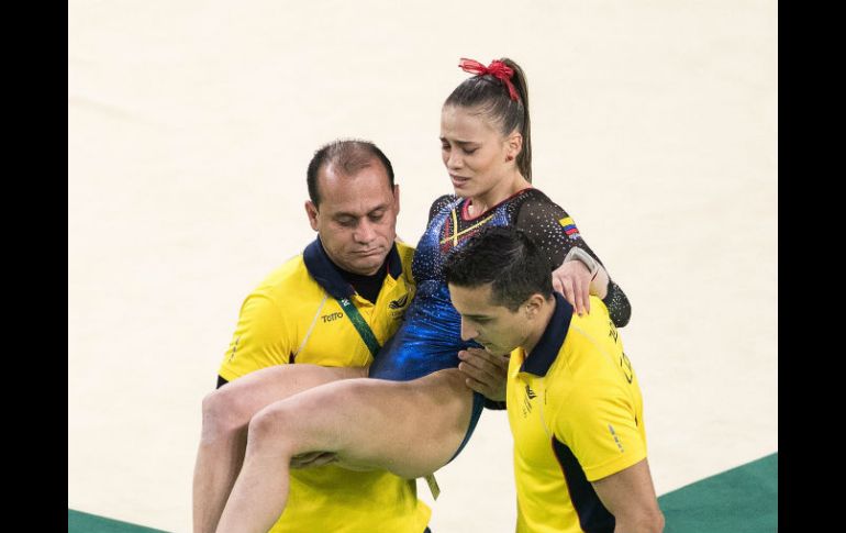 RÍO DE JANEIRO, BRASIL (07/AGO/2016).- La colombiana Catalina Escobar abandonó su ejercicio de suelo en la ronda de clasificación de gimnasia de los Juegos de Río, tras dañarse los tobillos en la salida de una diagonal.Escobar tuvo que abandonar el tapiz en brazos de sus entrenadores. Los servicios médicos la atendieron en la propia sala de competición, donde le vendaron los dos pies y le aplicaron hielo.La gimnasta, que aún debía competir en su mejor especialidad, el suelo, fue retirada finalmente a otra dependencia del estadio.En la jornada del sábado se lesionaron durante el concurso masculino el alemán Andreas Toba, también en suelo, y de mayor gravedad el francés Samir Ait Said, que se partió la pierna durante su ejercicio de salto.