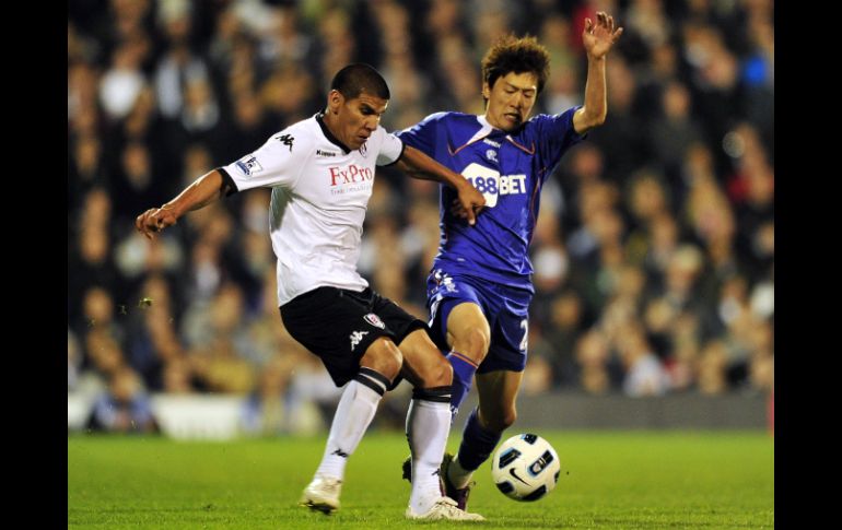 Carlos Salcido (izq.) en el partido contra Bolton Wanderers. AFP  /