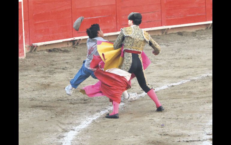Deportes | El triunfador es detenido Con oreja, pero esposado Un espontáneo se lanza al ruedo; el novillero Juan Camilo Alzate lo noquea Por: EL INFORMADOR 8 de agosto de 2011 - 01:12 hs Un espontáneo es golpeado por el novillero colombiano Juan Camilo Alzate. M. FREYRÍA / GUADALAJARA, JALISCO (08/AGO/2011).- La primera novillada en el coso guadalajarense resultó una tarde accidentada, tanto por el juego de los astados de Chinampas, como el incidente provocado por un espontáneo que se lanzó al ruedo en el quinto toro de la tarde. Y la plaza se dividió al momento que el atrevido aficionado, conocido en el medio taurino como el “Memes”, se lanzó al ruedo, logró dar un trapazo al burel, que siguió su carrera. Posteriormente el espontáneo le siguió en rápida carrera, para ser de pronto interceptado de manera impactante por el colombiano Juan Camilo Alzate, dejando al aficionado noqueado, lo cual impactó a la afición por la manera en la que el novillero decidió atajar al intruso. La lidia siguió, y Alzate logró sacar algunos muletazos de mérito, pero la mayoría de la afición se metió con él y le reclamó a más no poder el accidentado suceso. Tras irse de un estoconazo hasta los gavilanes, consiguió la única oreja de la tarde, y junto con ello, su pase a los separos municipales para determinar su situación jurídica, pues, confirmó el juez de plaza, Luis Ricardo Gutiérrez, tendrán que pagar una multa por falta administrativa, según los artículos 145 y 136 del reglamento taurino. A pesar del aparatoso encontronazo, el espontáneo, según información proporcionada por el médico de plaza a la empresa de la Nuevo Progreso, sólo traía un fuerte golpe en el cuello, y de esta manera, también tendrá que pagar una multa por la misma falta administrativa; Alzate fue subido a una patrulla de la Policía Municipal vestido de luces. Temas Toros Nuevo Progreso Lee También Molotov, tres décadas sin bajar el volumen Rosalía anuncia la fecha de estreno de su nuevo álbum Héctor Gutiérrez pone el temple en la Nuevo Progreso "Calita" regresa a Guadalajara tras su triunfo en la Nuevo Progreso Recibe las últimas noticias en tu e-mail Todo lo que necesitas saber para comenzar tu día Registrarse implica aceptar los Términos y Condiciones
