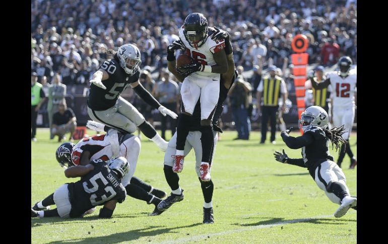 OAKLAND, CALIFORNIA (18/SEP/2016).- Justin Hardy capturó un pase desviado de ocho yardas en la zona de anotación para romper el empate a la mitad del último periodo, y los Halcones de Atlanta derrotaron el domingo 35-28 a los Raiders de Oakland.Matt Ryan lanzó tres pases de touchdown y contó con algo de suerte en la jugada que le dio la delantera a su equipo. Su envío en tercer down a Tevin Coleman fue desviado, pero el balón se elevó y Hardy lo atrapó en las diagonales.Atlanta (1-1) tomó así la ventaja por 28-21.Los Raiders (1-1) parecieron empatar el duelo en la siguiente ofensiva, cuando Amari Cooper capturó un pase de 51 yardas de Derek Carr. Pero los árbitros determinaron que Cooper salió del terreno intencionalmente antes de hacer la atrapada. Los Raiders señalaron que fue empujado por Desmond Tufant.Jack del Río, entrenador de Oakland decidió jugársela en cuarta y dos, pero Jalen Richard avanzó sólo una yarda antes de que lo frenaran.