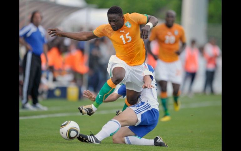 Deportes | Drogba se fracturó el brazo derecho en un partido amistoso contra Japón Costa de Marfil empata 1-1 con el Lausana Sin su estrella Didier Drogba, los marfileños hicieron varios intentos de gol pero sólo lograron un tanto Por: AFP 8 de junio de 2010 - 14:39 hs Aruna Dindane de Costa de Marfil trata de avanzar con el balón ante Sukaj Bashkim de Lausana. EFE / NYON, SUIZA (8/JUNIO/2010).- Sin su goleador y estrella Didier Drogba, Costa de Marfil igualó 1-1 este martes con el Lausana, equipo de la segunda división de la liga suiza, ante el que los marfileños acusaron falta de puntería en su último partido amistoso antes del Mundial. A Drogba, que se fracturó el cúbito del brazo derecho contra Japón el viernes, en otro amistoso, y fue operado con éxito el sábado en Suiza, no se le vio en las tribunas del estadio Colovray de Nyon, al oeste de Suiza. Por el lado marfileño marcó Gervinho en el 76, después de que los locales se adelantaron por medio de Guillaume Katz en el 24. Costa de Marfil mantuvo el control del partido, pero se sintió la falta de gol por la ausencia del atacante del Chelsea. El seleccionador sueco de los marfileños, Sven Goran Eriksson, aprovechó el partido para darle oportunidades a todos los delanteros del plantel, que este martes generaron una docena de situaciones de gol, pero apenas concretaron una. Keita, Kalou, Zogbo, Tiote y Aruna erraron chances claras, hasta que Gervinho la metió. Costa de Marfil integra el grupo de la muerte (G), en el que también están Brasil, Portugal y Corea del Norte. Temas FIFA Partidos amistosos Mundial de Sudáfrica 2010 Selección de Costa de Marfil Recibe las últimas noticias en tu e-mail Todo lo que necesitas saber para comenzar tu día Registrarse implica aceptar los Términos y Condiciones