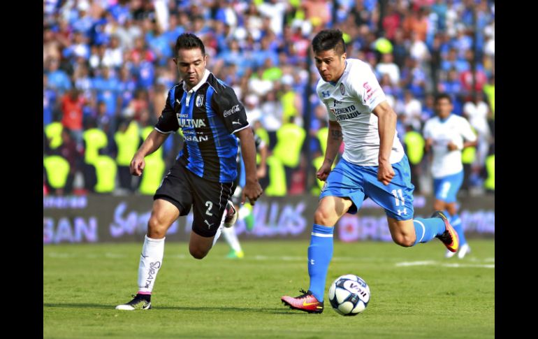QUERÉTARO, QUERÉTARO (13/AGO/2016).- El equipo de futbol Cruz Azul sigue sin ganar en el Torneo Apertura 2016, al empatar este sábado 0-0 con Querétaro, en partido de la fecha cinco de la Liga MX realizado en el estadio La Corregidora de esta ciudad. Con este resultado, Gallos Blancos suma nueve puntos y Cruz Azul acumula cuatro.El juego resultó disputado, con un esquema abierto de ambos equipos en busca del marco rival, destacando las aproximaciones de los celestos con remates dentro del area de Jorge Benítez, al minuto 12 y de Adrián Aldrete, a un costado del marco defendido por Tiago Volpi, al 28. Gallos Blancos llegó con cierto peligro al marco de Jesús Corona, en un disparo del argentino Emanuel Villa, que obligó al cancerbero a desviar a tiro de esquinal al 33 de acción y así terminó el primer tiempo sin anotaciones. En la parte complementaria, el cuadro de Querétaro salió con más vocación ofensiva para presionar al marco visitante, con disparos de Villa y Angel Sepúlveda desviados del marco de Corona, a los minutos 50 y 55. La Máquina respondió con ofensiva de Jorge Benítez, quien soltó potente disparo desviado de la portería de Volpi, al minuto 70. El partido siguió con pocas jugadas de peligros en las porterías con erráticos remates de los delanteros y al final el resultado de empate sin goles. El arbitraje correspondió a Roberto Ríos Jácome. Amonestó por Gallos Blancos a Emanuel Villa, al minuto 7, Neri Cardozo (63) y Edgar Benítez (67), y por los cementeros a Francisco Silva, al 10. Alineaciones: Querétaro.- Tiago Volpi, George Corral, Miguel Martínez, Juan Forlín, Jonathan Bornstein, Luis Miguel Noriega, Ángel Sepúlveda, Yerson Candelo (Edgar Benítez-64), Jaime Gómez, Neri Cardozo (Mario Osuna-85) y Emanuel Villa (Camilo Sanvezzo-70). DT: Víctor Manuel Vucetich Cruz Azul.- Jesús Corona, Julio César Domínguez, Francisco Silva, Adrián Alexei Aldrete, Enzo Roco, Joao Rojas, Aldo Leao Ramírez, Ariel Rojas (Omar Mendoza-53), Rafael Baca (Christian Giménez-64), Jonathan Cristaldo (Víctor Zuñiga-65) y Jorge Benítez. DT: Tomás Boy.