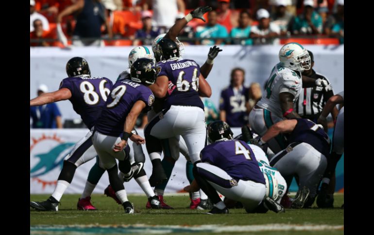 Deportes | Con un gol de campo en los últimos instantes, Baltimore derrota a Delfines 26-23 Cuervos escapan de Miami con victoria Con un gol de campo en los últimos instantes, Baltimore derrota a Delfines 26-23 Por: AP 6 de octubre de 2013 - 15:13 hs Justin Tucker (9) definió el encuentro con su gol de campo restando menos de dos minutos de juego. AP / MIAMI GARDENS, FLORIDA (06/OCT/2013).- Justin Tucker pateó un gol de campo de 44 yardas que adelantó a los Cuervos de Baltimore a falta de 1:42 de juego y luego contuvieron el intento de remontada de los Delfines de Miami al vencerles el domingo por 26-23. Ryan Tannehill completó un pase de 46 yardas con Brandon Gibson en cuarta oportunidad para mantener a Miami a flote, pero Caleb Sturgis falló un intento de gol de campo de 57 yardas cuando restaban 33 segundos. Los Cuervos (3-2) se recuperaron tras una derrota la semana pasada en Bufallo y ganaron como visitantes por primera vez en la temporada. Miami (3-2) sufrió su segunda derrota seguida. Baltimore avanzó 34 yardas para preparar el terreno del gol de campo decisivo de Tucker, su cuarto del partido. Los Cuervos acumularon su mejor total de yardas por tierra de la campaña con 133, con su mariscal de campo Joe Flacco lanzando pases para 269 yardas. Temas NFL Futbol Americano Delfines de Miami Cuervos de Baltimore Lee También Futbol hoy 13 de octubre de 2025: ¿Dónde ver los partidos en vivo? Así se jugarán las Semifinales del Mundial Sub-20 El Tricolor entrenó en Guadalajara tras la humillación ante Colombia México Sub-20 regresa al país tras eliminación ante Argentina Recibe las últimas noticias en tu e-mail Todo lo que necesitas saber para comenzar tu día Registrarse implica aceptar los Términos y Condiciones
