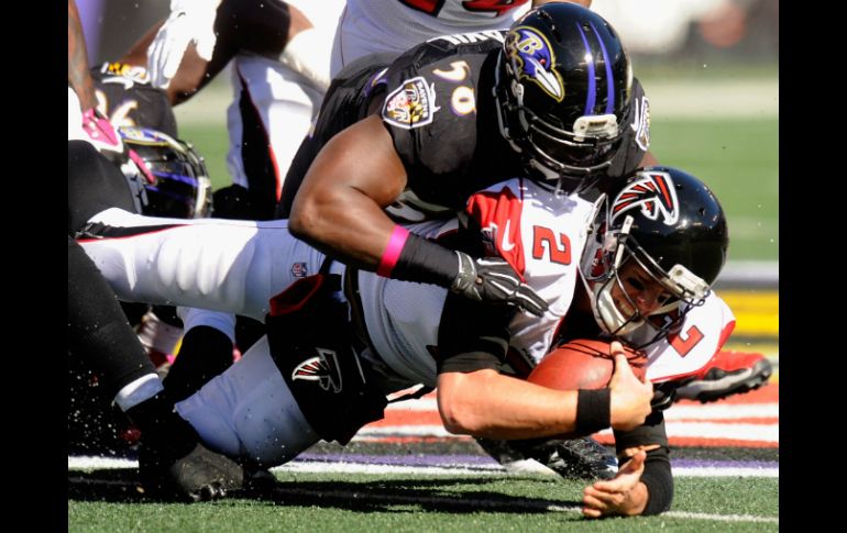 Deportes | Vencen a los Halcones 29-7, obteniendo su segunda victoria consecutiva Cuervos lucen su defensa en triunfo sobre Atlanta Vencen a los Halcones 29-7, obteniendo su segunda victoria consecutiva Por: AP 19 de octubre de 2014 - 15:13 hs Elvis Dumervil detiene el avance de Matt Ryan en el segundo cuarto. AFP / M. Layton BALTIMORE, MARYLAND (19/OCT/2014).- Elvis Dumervil y Pernell McPhee tuvieron dos capturas cada uno, como parte de una dominante actuación defensiva que guió el domingo a los Cuervos de Baltimore a un triunfo 29-7 sobre los Halcones de Atlanta. Baltimore (5-2) se fue al descanso con ventaja de 17-0 y se enfiló sin problemas a su segundo triunfo contundente en semanas consecutivas. Los Cuervos vencieron la semana pasada 48-17 a Tampa Bay. Los Halcones (2-5) evitaron sufrir su primera blanqueada desde diciembre de 2004 cuando Matt Ryan encontró a Roddy White para un touchdown de cuatro yardas con 7:12 por jugar para colocar la pizarra 20-7. Fue la primera anotación de Atlanta en el último cuarto en cinco partidos. Terrell Suggs capturó a Ryan para un safety con 3:39 restantes y Joe Flacco lanzó un pase de anotación de 39 yardas a Torrey Smith en cuarta oportunidad y nueve por avanzar. Fue el cuarto triunfo de Baltimore en sus últimos cinco juegos. Los Cuervos solo permitieron cuatro primeros y diez en una primera mitad casi perfecta y terminaron con cinco capturas para propinarle a los Halcones su cuarta derrota en fila. Temas NFL Futbol Americano Cuervos de Baltimore Halcones de Atlanta Lee También Colombia exhibe a México con goleada en Arlington México vs Colombia • Momentos destacados • Partido amistoso México cae ante Argentina y termina el sueño mundialista en Chile México vs Argentina • Momentos Destacados • Cuartos de Final • Mundial Sub-20 Recibe las últimas noticias en tu e-mail Todo lo que necesitas saber para comenzar tu día Registrarse implica aceptar los Términos y Condiciones