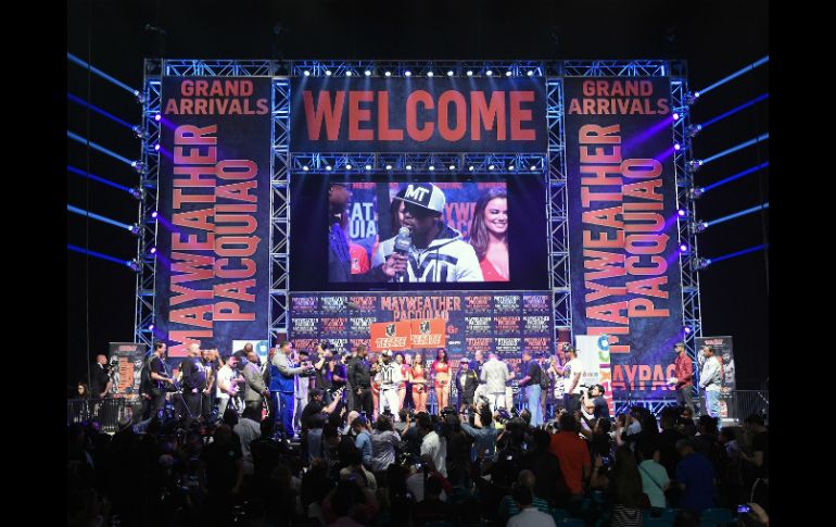 Previo a la llegada del pugilista al hotel MGM, un mariachi apareció para ser parte de la fiesta; minutos después, con sudadera y gorra con su tradicional "TMT", llegó el campeón welter del Consejo Mundial de Boxeo (CMB) y de la Asociación Mundial (AMB). En su turno al micrófono, el norteamericano agradeció el apoyo de los ahí presentes, a quienes consideró parte del "The Money Team", pues "todos juntos lo somos" rumbo a la pelea contra el filipino Manny Pacquiao. Reiteró su agradecimiento a quienes se dieron cita en el inmueble y les aseguró que realizó una gran preparación para el combate que se llevará a cabo en la MGM Grand Arena, "le daremos a los aficionados lo que quieren ver". En un evento donde se vieron mexicanos con banderas de su país, en apoyo al "Pretty boy", también desfilaron algunos pugilistas del respaldo de la cartelera, como el "azteca" Leo Santa Cruz, monarca supergallo del CMB.