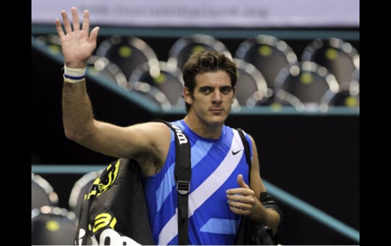 El tenista argentino Juan Martin Del Potro se despide del público tras perder contra el belga Olivier Rochus. EFE /
