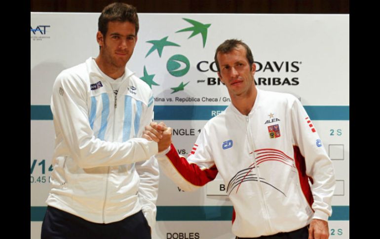 Deportes | El argentino se medirá contra Stepanek en Buenos Aires Del Potro disputará semifinal de Copa Davis en casa El argentino se medirá contra Stepanek en Buenos Aires Por: EFE 13 de septiembre de 2012 - 09:27 hs Del Potro (izq) Stepanek posan a las cámaras, después de plantear el sorteo oficial de sus próximas semifinales. REUTERS / BUENO AIRES, ARGENTINA (13/SEP/2012).- Juan Martín del Potro y Radek Stepanek abrirán este viernes la semifinal del Grupo Mundial de la Copa Davis de tenis que disputarán Argentina y la República Checa en Buenos Aires. El segundo partido lo disputarán Juan Mónaco y Tomas Berdych en la pista principal de tierra batida del estadio Mary Terán de Weiss del Parque Roca de la capital argentina. El ganador de la serie se enfrentará entre el 16 y el 18 de noviembre próximo en la final a España o Estados Unidos, que jugarán este fin de semana en Gijón. Temas Tenis Copa Davis Juan Martín del Potro Recibe las últimas noticias en tu e-mail Todo lo que necesitas saber para comenzar tu día Registrarse implica aceptar los Términos y Condiciones