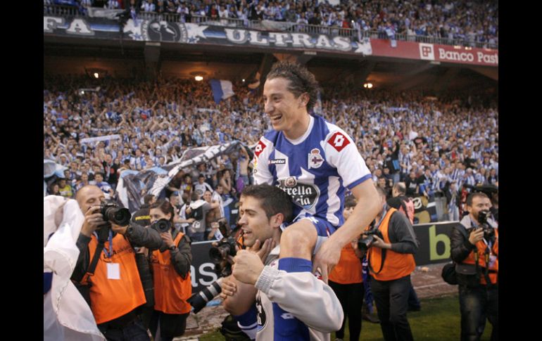 Deportes | El cuadro gallego vuelve a la máxima categoría del futbol español Deportivo La Coruña regresa a Primera División El cuadro gallego vuelve a la máxima categoría del futbol español Por: NTX 27 de mayo de 2012 - 16:28 hs Andrés Guardado festeja con sus compañeros el ascenso del 'Depor' a la Primera División. EFE / LA CORUÑA, ESPAÑA (27/MAY/2012).- El Deportivo La Coruña, con el mediocampista mexicano Andrés Guardado, logró este día su ascenso a la Primera División de España luego de vencer 2-1 al Huesca en la cancha del estadio Riazor. En juego perteneciente a la fecha 41 de la Segunda División el "Depor" necesitaba ganar para conseguir su objetivo y así fue ante el gran lleno que hicieron los aficionados deportivistas, quienes un año después pueden presumir de nuevo que tienen equipo en la máxima categoría. Una vez más el conjunto gallego vino de atrás para cosechar el triunfo ya que la fiesta parecía esfumarse cuando el Huesca se adelantó en el marcador al minuto 33 a través de Antonio Núñez para poner a la visita 1-0. Sin embargo antes del descanso el conjunto blanquiazul, sin hacer mucho en el campo logró la igualada antes de recibir el segundo. El 1-1 llegó cuando Iván Sánchez Riki metió presión al zaguero Luis Helguera y éste empujó la pelota en su propia meta para igualar el cotejo con un autogol al 41. El empate arribó en buen momento para el Deportivo La Coruña que en el segundo lapso mejoró en su accionar con el portugués Bruno Gama y el mexicano Andrés Guardado por las bandas para comenzar a crear peligro en la portería de Luis García. Al minuto 70 Xisco Jiménez con certero remate de cabeza tras un centro de Gama, colocó el 2-1 y el valioso gol que significó el regresó del Depor a la Primera División de España tras un año de luchar y esfuerzo en la "Liga de Plata". Con el triunfo los dirigidos por José Luis Oltra alcanzaron 88 unidades para amarra el primer lugar de la clasificación en la Segunda División a falta de una fecha por jugar, le siguen el Celta de Vigo con 84 y Valladolid con 82. El volante mexicano Andrés Guardado tuvo una aceptable labor, disputó los 90 minutos en lo que fue su último juego en Riazor como deportivista tras llegar al club en 2007, pues a partir de la siguiente campaña jugará con el Valencia. Guardado se va con 11 goles y 13 asistencias en esta campaña, lo cual ayudó en demasía para el ascenso del club, que sin duda extrañará al jalisciense, quien cumplió con su objetivo de colaborar en la vuelta de los gallegos a Primera, antes de irse a otro equipo. Temas Futbol Español Futbol Internacional Andrés Guardado Real Deportivo La Coruña Recibe las últimas noticias en tu e-mail Todo lo que necesitas saber para comenzar tu día Registrarse implica aceptar los Términos y Condiciones