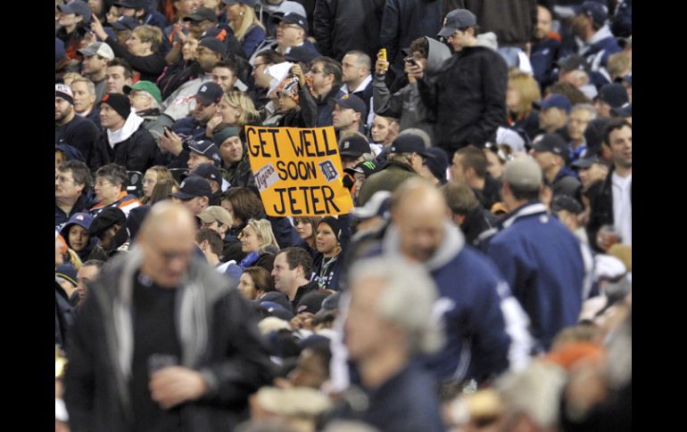 Deportes | El pelotero será operado del tobillo izquierdo para sanar su fractura Derek Jeter, fuera cinco meses El pelotero será operado del tobillo izquierdo para sanar su fractura Por: NTX 17 de octubre de 2012 - 18:58 hs Los aficionados de los Tigres de Detroit mandaron un mensaje al capitán de los Yankees. REUTERS / NUEVA YORK, N.Y. (17/OCT/2012).- El capitán de los Yankees de Nueva York, Derek Jeter, será sometido el próximo sábado a una operación en el tobillo izquierdo y estará entre cuatro y cinco meses en recuperación, informó hoy el club. El jugador, de 38 años de edad, sufrió una fractura en el tobillo izquierdo el sábado pasado en el primer partido contra los Tigres de Detroit (4-6), en la Serie de Campeonato de la Liga Americana. En ese encuentro, el parador en corto sufrió la lesión al moverse hacia su izquierda para manejar un rodado del dominicano Jhonny Peralta en el duodécimo inning. Derek Jeter será operado en la ciudad de Charlotte, Carolina del Norte, por el doctor Robert Anderson, indicó el equipo neoyorquino. El capitán podría volver a los entrenamientos con los Yankees en febrero o al final de la pretemporada a mediados de marzo de 2013. Este miércoles se lleva a cabo el cuarto juego en Detroit, serie en la que lleva ventaja Tigres por 3-0. Temas Beisbol MLB Yankees de Nueva York Recibe las últimas noticias en tu e-mail Todo lo que necesitas saber para comenzar tu día Registrarse implica aceptar los Términos y Condiciones