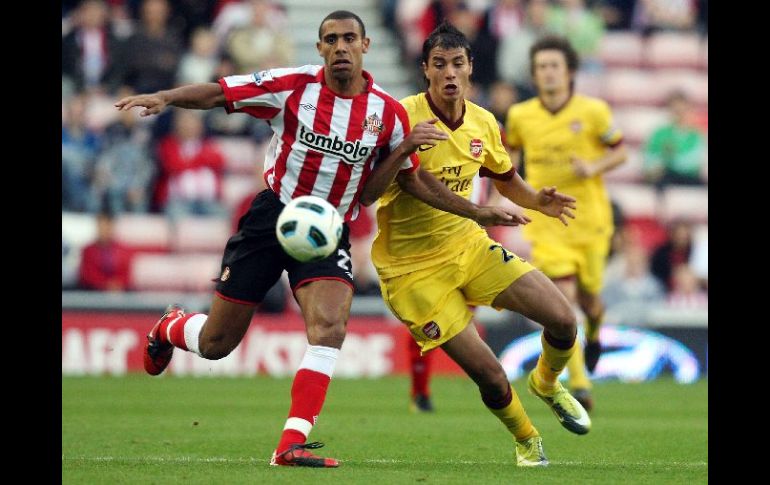 Deportes | Carlos Vela se quedó sin jugar Desperdicia Arsenal oportunidad de ser líder Sorpresivamente el Sunderland logró el empate para retener a los Gunners en el segundo lugar de la tabla con los mismos puntos que el Chelsea Por: NTX 18 de septiembre de 2010 - 13:04 hs Aunque Arsenal anotó desde el minuto 13, perdió la ventaja en el último minuto. AP / LONDRES, INGLATERRA (18/SEP/2010).- El Arsenal, donde se desempeña el delantero mexicano Carlos Vela, desperdició una buena oportunidad de ser líder de la Liga Premier de Inglaterra tras ser empatado 1-1 por el Sunderland en el último suspiro del encuentro. Gracias a un gol circunstancial del volante español Cesc Fábregas, al minuto 13, los Gunners se pusieron al frente en el Stadium of Light, pero al 90, Darren Bent, salvó a los suyos al amarrar la igualdad. Tras el amargo empate, los dirigidos por el francés Arsene Wenger, llegaron a 12 puntos para mantener el segundo lugar de la tabla con los mismos puntos que el líder Chelsea, que tiene mejor diferencia de goles y que mañana recibirá al Blackpool, en busca de ser puntero absoluto. Por su parte, el Sunderland, donde jugó el paraguayo Cristian Riveros, ex jugador de Cruz Azul, de México, sumó seis unidades para situarse en el décimo lugar. El delantero mexicano Carlos Vela, no vio actividad al quedarse en el banco de suplentes por decisión de Wenger, por lo que no pudo seguir con su racha goleadora, luego que en los últimos dos partidos, anotó tres tantos, uno al Bolton, en la liga y dos al Braga, en la Champions. Aunque la decisión dependió del estratega francés, al parecer Vela Garrido, se vio perjudicado y por ello no vio acción debido a la expulsión del camerunés Alex Song, al minuto 55. Los Gunners, se encontraron con un gol pocas veces visto y lo supieron mantener en la mayor parte del encuentro pero el Sunderland, no descansó y cuando parecía que iba ser derrotado rescató el empate. Antes del primer cuarto de hora de juego, el Arsenal abrió el marcador luego que el esférico le rebotó sin querer a Fábregas tras el despeje del zaguero Anton Ferdinand y el balón superó por arriba al portero belga Simon Mignolet para el 1-0. Al 29, el capitán Fábregas, salió lesionado, en su lugar entró el checo Tomas Rosicky lo que mermó el desempeño de los Gunners, que al 55, se quedaron con 10 elementos tras la tarjeta roja que recibió Song. Sin embargo, al 74 el equipo londinense tuvo la oportunidad de estirar el marcador pero Rosicky falló de pierna derecha un disparo desde el punto penal, el cual fue cometido al francés Samir Nasri. Tras la falla, el Sunderland, revivió su animo y no descanso hasta conseguir la igualdad, misma que se generó en el tercer minuto de compensación cuando Darren Bent, se encontró con un rechace de la zaga del Arsenal dentro del área y con derecha batió al portero ibérico Manuel Almunia para decretar el 1-1 final, que le supo a victoria a los locales y a derrota para los visitantes. Temas Liga Premier Futbol Inglés Arsenal Carlos Vela Recibe las últimas noticias en tu e-mail Todo lo que necesitas saber para comenzar tu día Registrarse implica aceptar los Términos y Condiciones
