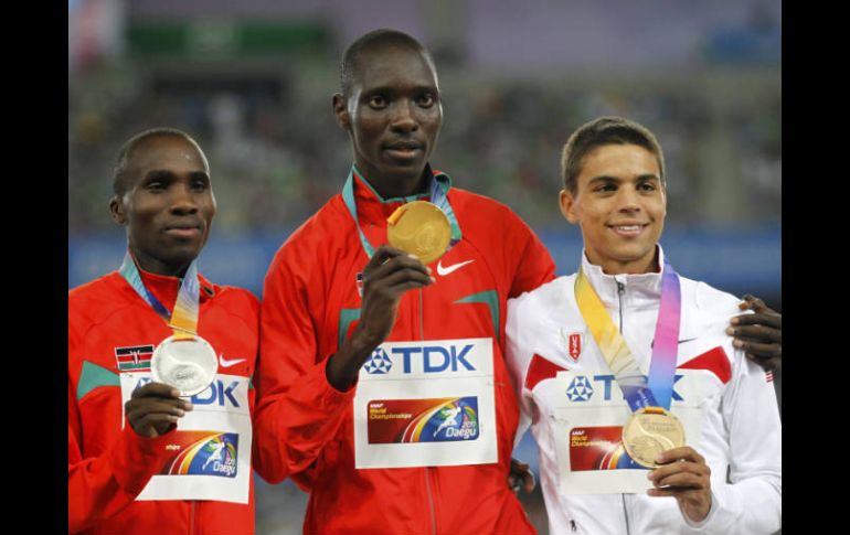 Deportes | La medalla de bronce se la quedó Matthew Centrowitz Doblete keniano en los mil 500 metros La medalla de bronce se la quedó Matthew Centrowitz Por: EFE 3 de septiembre de 2011 - 07:04 hs Los medallistas de la prueba de mil 500 metros muestran su premio. REUTERS / DAEGU, COREA DEL SUR (03/SEP/2011).- Asbel Kiprop, campeón olímpico en Pekín '08, se ciñó la doble corona de mil 500 metros y le dio en Daegu a Kenia el primer título de su historia en esta distancia. Kiprop remató con un poderoso esprint el cambio de ritmo que efectuó a falta de una vuelta junto a su compatriota Silas Kiplagat, y ambos firmaron un doblete autoritario por delante del estadounidense Matthew Centrowitz, que evitó el podio de Olmedo, cuya remontada en la recta final le fue insuficiente para alcanzar la soñada medalla. En una carrera con ilustres ausencias, lanzada por el neozelandés Nicholas Willis, Kiprop, cuarto en Osaka y Berlín, ejerció de campeón olímpico y se manejó tácticamente perfecto, sin dar opción a sus rivales y a su compatriota Kiplagat, el más rápido del mundo este año. Kiprop firmó el oro con 3:35,69, Kiplagat la plata con 3:35,91 y Centrowitz, que siempre fue en la parte delantera, el bronce con 3:36,08. El español Manuel Olmedo, un ochocentista reconvertido al mil 500, estuvo muy cerca el podio, pero su magnífica recta final no le permitió llegar hasta los metales. Precedió en la meta a los marroquíes Abdalaati Iguider (3:36,56) y Mohamed Moustaoui (3:36,80), el venezolano Eduar Villanueva consiguió una magnífica octava plaza (3:37,31) y el francés Mehdi Baala no pudo en esta ocasión remontar desde el sótano del grupo lo suficiente y concluyó en un más que discreto noveno lugar con 3:37,46. Temas Atletismo Mundial de Atletismo IAAF Recibe las últimas noticias en tu e-mail Todo lo que necesitas saber para comenzar tu día Registrarse implica aceptar los Términos y Condiciones