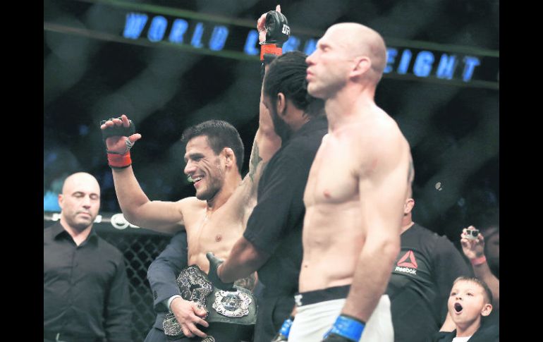 Deportes | UFC. Combate estelar Dos Anjos retiene el cetro en Orlando El peleador brasileño necesitó poco más de un minuto para vencer por nocaut técnico al norteamericano Cerrone Por: AP 21 de diciembre de 2015 - 00:33 hs Celebración. El brasileño Rafael dos Anjos (izquierda) festeja tras su victoria sobre Donald Cerrone. AP / J. Langston ORLANDO, FLORIDA (21/DIC/2015).- El brasileño Rafael dos Anjos noqueó el sábado por la noche a Donald Cerrone cuando había transcurrido apenas un minuto de su combate, para retener el cetro de los ligeros en la UFC. Dos Anjos le hizo daño a Cerrone mediante una patada al abdomen, siguió avanzando y desató una avalancha de golpes sobre el estadounidense, acorralado contra la malla. Cerrone logró escapar y regresó al centro del octágono, pero luego ambos fueron al suelo y Anjos definió con una serie de golpes y sujeciones que llevaron a que se decretara el nocaut técnico a los 1:06 minutos. El combatiente sudamericano mejoró a una marca de 35-7, en tanto que Cerrone cayó a 28-7. Fue el segundo triunfo de Dos Anjos sobre el peleador de Colorado Springs, quien había hilvanado ocho victorias consecutivas. En las peleas preliminares durante esta función de artes marciales mixtas realizada en Orlando, Alistair Overeem consiguió un triunfo por nocaut técnico sobre el ex campeón de la UFC Junior dos Santos, en un combate dentro de la división de los pesados. Ambos rivales se combinaron para asestar sólo 11 golpes en el primer asalto. Overeem propinó siete impactos contra cuatro del brasileño. Pero el combate se aceleró en las postrimerías del segundo episodio. Dos Santos presionó al británico-holandés contra la alambrada, y ambos se desplazaron de un costado a otro del octágono, donde Overeem derribó a su adversario mediante un gancho izquierdo. Overeem, quien consiguió su tercera victoria consecutiva, se lanzó sobre su oponente derribado y lo castigó con cuatro puñetazos, para que el réferi decretara el fin de las hostilidades. En la división de los ligeros, el estadounidense Nate Díaz (18-10) se llevó un triunfo por decisión unánime sobre su compatriota Michael Johnson (16-10) Fue el primer combate de Díaz en más de un año. Johnson sufrió su segunda derrota consecutiva. Temas Box UFC Lee También Peleas de box hoy sábado 18 de octubre: horarios y dónde ver la cartelera completa Nuevo diseño del ring, ¿adiós boxeo aburrido? Revelan principal causa de la derrota de Canelo Álvarez ante Crawford Peleas de box hoy sábado 11 de octubre: horarios y dónde ver la cartelera completa Recibe las últimas noticias en tu e-mail Todo lo que necesitas saber para comenzar tu día Registrarse implica aceptar los Términos y Condiciones