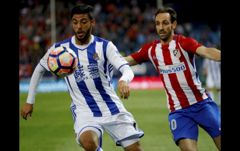 MADRID, ESPAÑA (04/ABR/2017).- El Atlético de Madrid alargó su mejor racha de esta temporada de la Liga, cinco triunfos consecutivos, frente a la Real Sociedad, donde juega el mexicano Carlos Vela, doblegada por el brasileño Filipe Luis, propulsor y goleador del 1-0 del duelo en el estadio Vicente Calderón, y por el enésimo ejercicio práctico y solvente del equipo rojiblanco.Vela disputó los noventa minutos del partido y se fue en blanco.Se trata de un triunfo valioso numéricamente para el Atlético. No sólo por su permanencia en la tercera posición por segunda jornada seguida, además a la espera del Barcelona-Sevilla de este miércoles, sino porque al menos la cuarta plaza está más que encarrilada, con diez puntos de colchón; doce ya sobre la Real Sociedad, caída hasta la séptima posición.Un cuarto de hora duró en el Calderón. Porque al equipo donostiarra mandón del principio, más paciente y preciso que profundo con la pelota en ataque y afinado en la presión sin ella, le respondió rumbo al 1-0 el Atlético, con algo más de volumen de juego, más metido en el choque, más certero a la contra y, sobre todo, más intenso, con más desborde, más activo e incisivo.Desperezado el Atlético, cambió el partido de forma sustancial. Lo intuyó todo el mundo en una ocasión de Antoine Griezmann, la primera aparición realmente inquietante sobre el área visitante, en el minuto 18; lo confirmó luego la mano del argentino Gero Rulli ante el delantero francés y lo ratificó el 1-0 casi a la media hora.Porque el actual Atlético ha reencontrado también desborde arriba. A la tercera marcó un gol. Un golazo por la elaboración de la jugada, desde Filipe Luis hasta Filipe Luis, desde la banda izquierda hasta el borde del área pequeña, primero con una pared con Griezmann y después con otra, definitiva, con Fernando Torres (1-0).Dos goles del lateral brasileño en cuatro días. No es su cometido, ni siquiera es algo que figure entre sus estadísticas más notables -entre las dos últimas dos campañas anotó dos tantos-, pero es una muestra más del nivel imparable al que se mueve actualmente por la banda izquierda. Defiende, ataca, regatea, juega y ahora hace goles.Un montón de posibilidades para su equipo, este martes para romper un encuentro que ya no se parecía en nada al que había comenzado 27 minutos antes. Tampoco el Atlético ni, por extensión, la Real Sociedad, que sobrevivió al descanso por una cuestión de puntería, la que le faltó primero a Torres y después a Carrasco.Un gol más cuatro ocasiones muy buenas, además de un par de tiros más de Filipe Luis. No era un dominio apabullante, tampoco una sucesión de oportunidades, pero sí un ejemplo de concreción en sus ataques, indescifrables por momentos para la defensa donostiarra, desajustada y a menudo un segundo por detrás de las jugadas que proponía de tres cuartos de campo hacia adelante el Atlético.A la Real, desaprovechado su momento al principio de partido, sin el interesantísimo Odriozola, lesionado en el minuto 38, ya por la banda derecha, tuvo todo el segundo tiempo para recomponerse. Lo hizo en la intención, en la forma con la que asumió de nuevo el balón, pero se quedó ahí, sin ocasiones reales, en nada en ataque.Nunca irrumpió en los últimos metros, frenado siempre atrás por la astucia y la firmeza con la que defiende de nuevo el Atlético, por mucho que la posesión casi era ya un monopolio de su rival, por mucho que ya le costaba un mundo salir con claridad hacia al ataque y por mucho que jugara ya replegado, fijado en campo propio.Un partido ya visto muchas veces en el Calderón cuando el equipo local manda en el marcador, un encuentro que, salvo contadas excepciones, siempre termina igual, con los tres puntos del Atlético, con pocas ocasiones rivales y con mínimos sobresaltos de verdad, como hoy, sin ningún tiro de la Real entre los tres palos.