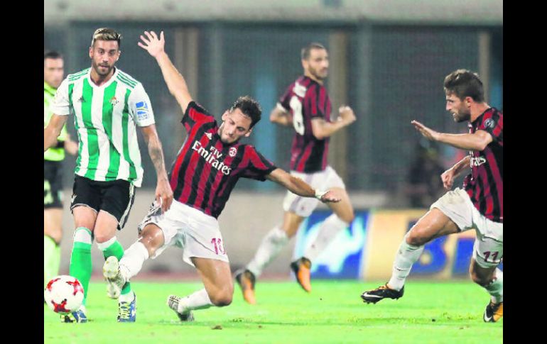 ROMA, ITALIA (10/OCT/2017).- Un gol de penalti en el minuto 90 le dio el triunfo al Real Betis, equipo donde juega el tapatío Andrés Guardado, contra el Milan, en un partido amistoso disputado en Catania, al Sur de Italia.El duelo se decidió en la reanudación, en la que los béticos se adelantaron gracias a un gran gol del español Fabián Ruiz y en la que encajaron el 1-1 con un penalti marcado por el portugués André Silva, antes de conseguir la victoria en el último minuto. A apenas 24 horas de distancia del amistoso perdido contra el Córdoba, el técnico español del Betis, Quique Setién, realizó siete cambios en su 4-3-3 titular y sólo confirmó a los españoles Antonio Barragán, César de la Hoz y Sergio León y al argentino Matías Nahuel.El Milan fue superior en la primera hora de juego, en la que el VAR (Árbitros Asistentes de Video) anuló un gol a André Silva por fuera de juego, pero fue el Betis quien se adelantó primero, gracias a un zurdazo desde fuera del área de Fabián Ruiz (67’).Se trata del segundo gol en esta pretemporada para el jugador crecido en la cantera del Betis, tras el que marcó contra el Stuttgart.Sin embargo, la reacción del Milan no tardó en llegar y en el minuto 75 André Silva firmó el gol del 1-1 al transformar con seguridad un penalti provocado por una falta sobre el defensa paraguayo Gustavo Gómez.Pese al gol recibido, los hombres de Setién no perdieron la concentración y sus esfuerzos tuvieron premio en el minuto 90, cuando el árbitro pitó, de nuevo con la ayuda de la VAR, una pena máxima.Antonio Sanabria, que entró poco antes al campo, no falló desde los 11 metros y firmó la diana que supuso una victoria prestigiosa para el Real Betis tras la ya citada derrota sufrida el martes en Córdoba.El tapatío Andrés Guardado, quien se perfila como segundo capitán del equipo tras su reciente llegada al Real Betis, recibió tarjeta amarilla por el árbitro Daniele Doveri.
