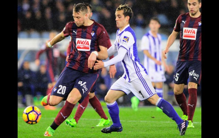 MADRID, ESPAÑA (28/FEB/2017).- El Eibar empató 2-2 con la Real Sociedad este martes en un partido plagado de tarjetas de la 25ª jornada liguera, impidiendo a los donostiarras colocarse cuartos en puestos de Liga de Campeones.Juanmi abrió el marcador para la Real Sociedad con un remate de cabeza tras un centro desde la derecha (14), pero el argentino Gonzalo Escalante equilibró también de cabeza al saque de un córner en el 25, antes de que el mexicano Carlos Vela rubricara el 2-1 (68) de penal.Cuando parecía que el partido iba a acabar con victoria donostiarra, Pedro León controló un balón en la frontal del área para soltar un disparo que supuso el 2-2 definitivo (90+3)."Lo teníamos casi en la mano y se nos ha escapado", dijo el técnico de la Real Sociedad, Eusebio Sacristán tras el partido.El partido, muy igualado, se vio marcado por el gran número de tarjetas que sacó el árbitro del encuentro, que acabó dejando a ambos equipos con diez hombres tras expulsar al francés del Eibar Florian Lejeune y al autor del gol de la Real Sociedad, Juanmi, por doble amonestación (46 y 59).El Eibar también vería expulsado a su entrenador José Luis Mendilíbar (69) por protestar en la acción del penal cometido por el portero Yoel sobre Íñigo Martínez y que transformaría Vela.Tras una buena primera parte del Eibar, la Real Sociedad logró controlar el encuentro en el segundo tiempo, especialmente tras ponerse por delante en el marcador.Pero, el Eibar siguió presionando hasta lograr el empate en el último suspiro.