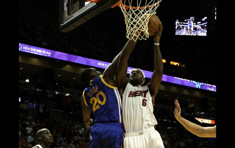 Deportes | James y Wade aportan 50 puntos para la victoria 114-107 a Golden State El Heat remonta desventaja y gana James y Wade aportan 50 puntos para la victoria 114-107 a Golden State Por: AP 1 de enero de 2011 - 21:03 hs Lebron James encesta, ante el salto del jugador de Golden State, Ekpe Udoh. AFP / MIAMI, ESTADOS UNIDOS (02/DIC/2011).- LeBron James anotó 25 puntos y tuvo 10 asistencias, Dwyane Wade también hizo 25 unidades y el Heat de Miami remontó una desventaja de 20 puntos para derrotar el sábado a los Warriors de Golden State por 114-107 y anotarse su 17ma victoria en 18 partidos. Chris Bosh agregó 20 puntos y 11 rebotes para Miami, que se encuentra ahora en un virtual empate con Boston en la cima de la Conferencia Este. Los Celtics superan a Miami sólo por 0,031 puntos porcentuales. El ex delantero del Heat, Dorell Wright, anotó 30 puntos para Golden State en su primer viaje a Miami como contrincante. Monta Ellis encestó 25 puntos y Stephen Curry sumó 15 para los Warriors. Golden State hizo 36 puntos en cada uno de los primeros dos cuartos, pero sólo 35 en toda la segunda mitad. El puertorriqueño Carlos Arroyo hizo 11 puntos y bajó 11 rebotes en 26 minutos jugados. Temas NBA Basquetbol LeBron James Miami Heat Warriors de Golden State Lee También Astros de Jalisco doblega a Xalapa y se pone a un juego de la Final de Zona CEO de Coca-Cola aclara si retiraría patrocinio del Super Bowl Billie Eilish fue agredida por fan en pleno concierto en Miami Astros de Jalisco toma ventaja sobre Xalapa en la semifinal de zona Recibe las últimas noticias en tu e-mail Todo lo que necesitas saber para comenzar tu día Registrarse implica aceptar los Términos y Condiciones