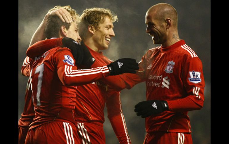 Deportes | El conjunto de Roy Hodgson se mete a zona de clasificación El Liverpool goleó 3-0 al Aston Villa El conjunto de Roy Hodgson se mete a zona de clasificación Por: EFE 6 de diciembre de 2010 - 15:28 hs Maxi Rodríguez fue felicitado por sus compañeros luego de anotar a favor del Liverpool. AP / LONDRES, INGLATERRA (06/DIC/2010).- El Liverpool restableció su situación, inestable tras dos encuentros sin ganar, a costa de las penurias del Aston Villa, al que goleó (3-0) alentado por un comienzo fulgurante, en el encuentro que completó la decimosexta jornada de la Premier. Tras el empate ante el Steaua Bucarest en la Liga Europa, precedida por el revés ante el Tottenham en la decimoquinta jornada, el equipo de Roy Hodgson sacó adelante su partido, que le arrima a la parte alta de la clasificación, a orillas de los puestos europeos. Sin Fernando Torres, baja de última hora porque su mujer se puso de parto, los Reds suman ya veintidós puntos tras el cuarto triunfo consecutivo en Anfield. Uno menos que el Bolton, sexto, y cuatro por debajo del Tottenham, quinto. En un cuarto de hora el Liverpool tenía más que encarrilado el partido. El francés David Ngog marcó tras una acción del eslovaco Martin Skrtel. A continuación fue el holandés Ryan Babel, sustituto de Torres, el que remató de cabeza una jugada del brasileño Lucas Leiva. Fue un duro golpe para el equipo del francés Gerard Houllier, que regresó a Anfield seis años después. Al escenario del equipo que dirigió durante casi cuatro cursos. Está en crisis el Aston Villa desde que arrancó el ejercicio. Se mueve por la parte baja. Acuciado por los puestos de descenso, de donde le separan solo dos puntos. Lejos del nivel de los últimos años, en los que se manejó por las alturas. Ni siquiera la adquisición del veterano francés Robert Pires, que pareció abandonar el fútbol tras sus temporadas en el Villarreal, ha cambiado el rumbo del cuadro de Birmingham. El centrocampista entró pasada la hora de juego. Ya con el partido cerrado después de que el argentino Maxi Rodríguez dejara el choque sin historia al firmar el tercer tanto. . -- Ficha técnica: 3 - Liverpool: Reina, Glen Johnson, Konchesky, Kyrgiakos (Kelly, m.84), Skrtel, Raul Meireles, Maxi (Fabio Aurelio, m.76), Lucas, Kuyt (Cole, m.80), Babel y Ngog. 0 - Aston Villa: Friedel, Luke Young, Warnock, Dunne, Clark (Delfouneso, m.46), Collins, Downing, Ireland, Albrighton (Pires, m.65), Hogg y Agbonlahor (Carew, m.66). Goles: 1-0, m.14: Ngog; 2-0, m.16: Babel; 3-0, m.55: Maxi Rodríguez. Árbitro: Phil Dowd. Mostró tarjeta amarilla a Clarck. Incidencias: encuentro correspondiente a la decimosexta jornada de la liga de Inglaterra disputado en el estadio de Anfield. Temas Liga Premier Futbol Internacional Liverpool Aston Villa Recibe las últimas noticias en tu e-mail Todo lo que necesitas saber para comenzar tu día Registrarse implica aceptar los Términos y Condiciones