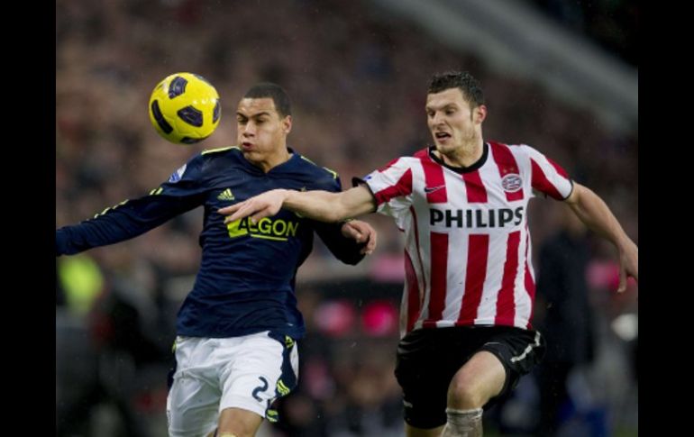 Deportes | El PSV Eindhoven y el Ajax no se hicieron daño ya que no pudieron hacer goles El PSV mantiene el liderato El PSV Eindhoven y el Ajax no se hicieron daño ya que no pudieron hacer goles Por: NTX 27 de febrero de 2011 - 10:30 hs Erik Pieters (der.) del PSV lucha por el dominio del esférico. AFP / EINDHOVEN, HOLANDA (27/FEB/2011).- El PSV Eindhoven, que cuenta con el zaguero mexicano Francisco Javier "Maza" Rodríguez, entre sus filas consiguió este día un empate sin goles (0-0) contra el Ajax, en el clásico del balompié holandés. En duelo de la jornada 25 de la Liga de Holanda, disputado en el Philips Stadion, el conjunto Granjero no pudo aprovechar su condición de local y se tuvo que conformar con un punto, que al final le sirvió para seguir en la cima. El PSV, se confió tras la derrota de su más cercano perseguidor Twente Enschede y decidió no arriesgar, por lo que en la mayor parte del encuentro esperó al Ajax, en busca de dañarlo en jugadas de contragolpe, que al final no logró concretar. Por su parte el cuadro "Ajacied", dejó escapar una buena oportunidad para acortar distancias en relación al liderato, los dirigidos por Frank De Boer, mostraron mayor determinación que el PSV, pero jamás tuvieron la claridad para abrir la zaga y perforar la meta del sueco Andreas Isaksson. Al final se mantuvo el mismo marcador con el que comenzó el duelo, donde se mostraron escasas emociones de gol ante la precaución de los conjuntos. Con la igualada, el PSV Eindhoven llegó a 54 unidades, para seguir como líder en solitario a tres de distancia del campeón defensor Twente, por su parte el Ajax alcanzó 49 puntos, que lo mantienen en el tercer escalón aún con posibilidades de pelear por el campeonato liguero. El defensa Francisco "Maza" Rodríguez, no tuvo actividad por decisión del timonel Fred Rutten, quien optó por dejarlo en el banco de suplentes, de este modo el mexicano acumuló su segundo cotejo sin jugar con el PSV, luego que el jueves pasado en la Liga Europea tampoco tuvo minutos de ascción. Temas Futbol Internacional Liga de futbol Holandés PSV Eindhoven Recibe las últimas noticias en tu e-mail Todo lo que necesitas saber para comenzar tu día Registrarse implica aceptar los Términos y Condiciones