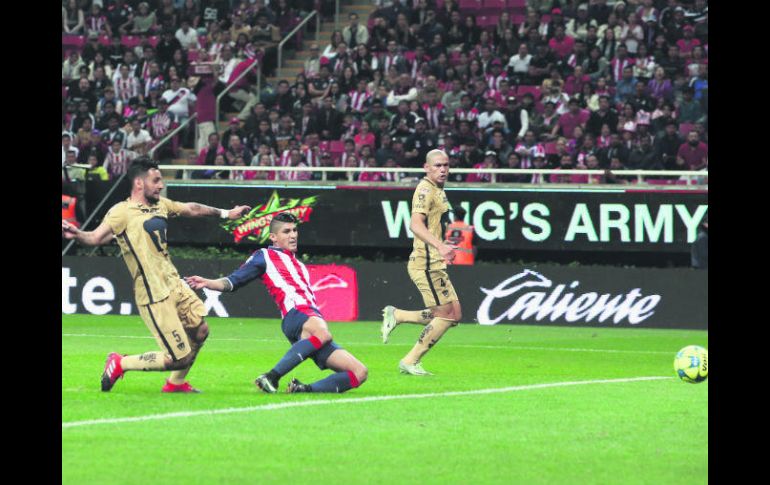 GUADALAJARA, JALISCO (08/ENE/2017).- Guadalajara fue tan ineficaz como contundente en la noche de su presentación en este 2017.Ante el marco esplendoroso de un Estadio Chivas prácticamente lleno, el Rebaño aprovechó 15 minutos de inspiración, tuvo la fortuna de que el rival estrellara tres balones en los postes, y terminó pidiendo la hora para al final ganar 2-1 a Pumas.Chivas empieza el torneo con tres puntos y además alarga a 35 años la racha sin derrota frente a la UNAM en Guadalajara.ConfundidosGuadalajara empezó con el 11 que utilizó en la pretemporada, incluidos Osvaldo Alanís en lugar de Salcido y Rodolfo Pizarro ubicado detrás de Pulido.La “Chofis” atacaba por derecha y Zaldívar por izquierda, con Orbelín y el “Gallito” Vazquez jugando éste último en perjuicio de Michael Pérez completaban un medio campo y ataque de mucha categoría.Sin embargo el inicio del partido era complicado para el Rebaño. No había cohesión entre Orbelín y Vazquez, además de la confusión de Pizarro sobre sus funciones con y sin pelota.Eso y la dinámica que impuso Pumas para recuperar la pelota provocaron que en el arranque del juego fuera la visita quien dilapidara un par de oportunidades.Una, al minuto 4 cuando el chileno Castillo se plantó frente a Cota y vació su disparo a un costado del arco. Otra, sobre el minuto 15 cuando Cortés estrelló en el larguero un cabezazo que tenía que terminar en las redes tras una gran jugada de Gallardo.Chivas se reacomodó con Pizarro tirado unos metros más atrás y el Rebaño por fin tuvo la pelota.Fue entonces que Guadalajara se encontró con aquello que todo buscan en el futbol: la contundencia.En la primera acción de peligro, el Rebaño vacunó al rival. Al 27’ los locales tocaron la pelota rápido y con precisión. Pulido recibió a las afueras del área y habilitó por derecha a la “Chofis”, que recibió, entró al área, soportó el achique y la finta de Palacios y definió a primer poste para el 1-0 que enloqueció al inmueble, prácticamente lleno.Los rojiblancos se acomodaron mejor y al minuto 38 pusieron el juego 2-0 cuando Zaldívar escapó por izquierda y metió servicio al área donde Pulido le gana la carrera a Verón y a Mendoza, para llegar a tiempo a la cita con el esférico y tocar a la redes para ampliar la ventaja rojiblanca.Chivas pudo hacer el tercero pero Alan perdonó y el Rebaño se fue con una cómoda ventaja al descanso.DominadoEn el complemento, Pumas adelantó líneas y Chivas creyó que no sólo tenía la victoria en la bolsa, sino que vendría una goleada sobre los capitalinos.Sin la pelota, el Rebaño es muy vulnerable y Pumas, con todos sus defectos, los puso contra la pared.Primero, al 56’, Pumas acorta distancias cuando Alan Mendoza dispara cruzado y a la base del poste izquierdo luego de que Chivas regalara el balón en una salida.Después, Barrera estrelló un disparo en el poste, y Cortés también dejó en el palo el cobro de un tiro libre que iba al ángulo superior derecho de Cota.El Rebaño sólo recompuso cuando Salcido entró a jugar los últimos 10 minutos, pero inexplicablemente terminó pidiendo la hora ante un rival al que debió golear.EL DEBUTANTE Rodolfo Pizarro (Chivas)Voluntarioso en todo momento, corriendo la milla, con lealtad en la recuperación del esférico y una muy buena actitud, pero debido al tipo de partido, hubo poco tránsito adelante de medio campo, por lo tanto no tuvo posibilidad de armar avances, distribuir juego actuando atrás del delantero.ASPECTOS TÁCTICOSConfundido Al Guadalajara le costó el inicio del partido. El acomodo de la “Chofis” por derecha y de Zaldívar por izquierda (foto), más la incorporación de Pizarro jugando detrás de Pulido, causó confusión cuando Pumas intentó robarle el esférico a Chivas con base en la dinámica.Reacomodo Se tardó, pero Chivas entendió el rol de partido que tenían enfrente. Pizarro (#20) recorrió unos metros atrás para auxiliar a Orbelín (centro) y al “Gallito”. Chivas tuvo la pelota después de los 15 minutos del juego, pero se volvió amplio dominador del encuentro.Inexplicable En la segunda mitad, con los dos equipos jugando con los mismos que iniciaron el partido, todo fue al revés. Chivas cedió la pelota al rival en una inútil búsqueda de contragolpear al rival. López y Zaldívar desaparecieron y Palacios se aburría en el arco de los Pumas.El cambio clave Pese a jugar mal en el complemento Chivas tenía los espacios que daba Pumas en su búsqueda del empate. Entraron Fierro y Brizuela en lugar de López y Zaldívar, pero nada pasó. Fue hasta que entró Salcido (foto) que el Rebaño pudo defender su ventaja con la pelota.LA FRASE“Importante iniciar ganando, Chivas tenía, creo, cinco años sin comenzar ganando en un torneo”.Matías Almeyda, DT de Chivas