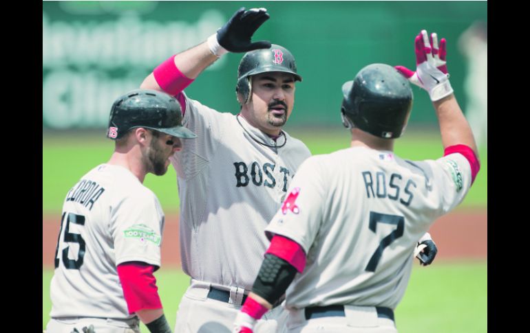 Deportes | Beisbol. Grandes ligas El ''Titán'' produce cuatro carreras Adrián González conectó un cuadrangular y un doblete Por: EL INFORMADOR 13 de agosto de 2012 - 04:02 hs Bien hecho. Adrián González es felicitado por sus compañeros. AFP / CLEVELAND, ESTADOS UNIDOS (13/AGO/2012).- Jon Lester ponchó a 12 bateadores 12 en seis entradas para obtener su primera victoria en seis semanas, y los Medias Rojas de Boston dividieron la serie de cuatro encuentros al vencer el domingo por paliza de 14-1 a los Indios de Cleveland. El mexicano Adrián González conectó un cuadrangular productor de dos carreras y un doblete que empujó otras dos. Los Medias Rojas construyeron una ventaja de 6-1 en la pizarra contra Corey Kluber (0-1) y anotaron su mayor cantidad de carreras desde que apalearon a los Marlins de Miami por 15-5 en un juego interligas el 20 de junio. Lester (6-10) permitió tres imparables y una anotación para poner en 5-1 su marca de por vida contra Cleveland. Kluber recibió seis carreras y siete hits en tres entradas y un tercio; ponchó a cuatro adversarios. Toronto 10 Yanquis NY 7 Rajai Davis igualó una marca en su carrera al producir cinco carreras, mientras que el dominicano Edwin Encarnación bateó un cuadrangular de dos anotaciones, y los Azulejos de Toronto vencieron por 10-7 a los Yanquis de Nueva York, cortando una cadena de cinco derrotas consecutivas. Davis realizó además la jugada defensiva del juego, escalando el muro del jardín izquierdo en la séptima entrada para atrapar un cuadrangular potencial del jugador de cuadro de los Yanquis Casey McGehee. Temas Beisbol MLB Yankees de Nueva York Lee También ¿Dónde ver EN VIVO la Serie Mundial Dodgers vs Blue Jays? Charros gana un juego lleno de drama, apagones y lluvia en Mexicali Charros apadrinan a 35 academias deportivas en Jalisco México vuelve a tener presencia en la Serie Mundial con un nuevo representante Recibe las últimas noticias en tu e-mail Todo lo que necesitas saber para comenzar tu día Registrarse implica aceptar los Términos y Condiciones