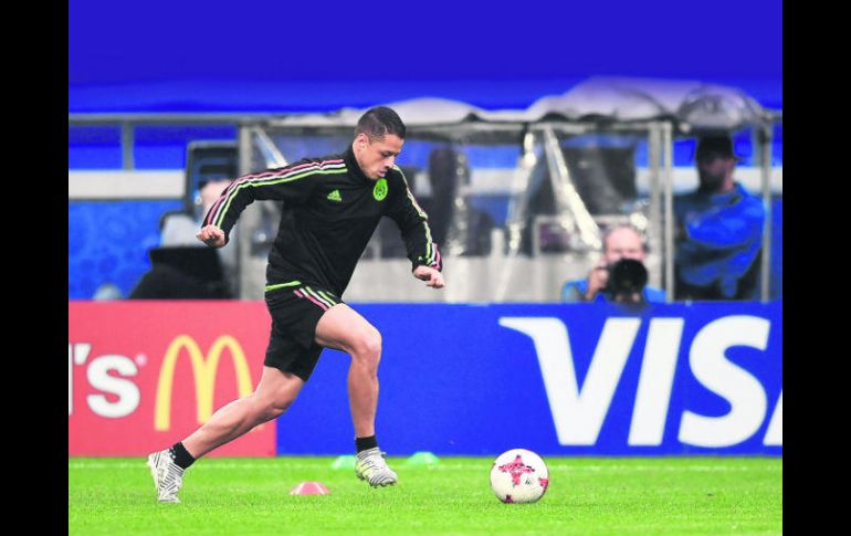 En Javier Hernández están cifradas las esperanzas para que el Tricolor le marque a los lusos, monarcas de la Eurocopa pasada. AFP /