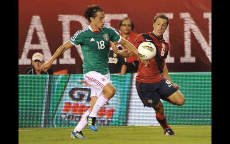 Deportes | La Selección de México iguala a un gol con Estados Unidos en Filadelfia El Tri empata en el debut de Klinsmann La Selección de México iguala a un gol con Estados Unidos en Filadelfia Por: NTX 10 de agosto de 2011 - 21:14 hs Andrés Guardado pelea un balón con Cherundolo de Estados Unidos durante el partido que terminó empatado a un gol. AFP / LEA EL MINUTO A MINUTO DE ESTE PARTIDOFILADELFIA, PENNSYLVANIA (10/AGO/2011).- La Selección de futbol de Estados Unidos rescató un empate 1-1 ante México, su archirival en la zona de Concacaf, en un duelo amistoso que marcó el debut del alemán Jürgen Klinsmann en el banquillo estadounidense. México abrió el marcador del Lincoln Financial Field, en la ciudad de Filadelfia, a los 17 minutos con tanto de Oribe Peralta, pero Robbie Rogers logró la igualada para los locales al 73. Peralta remató de pierna derecha un servicio potente que Andrés Guardado mandó al corazón del área tras el cobro de un tiro de esquina por la banda derecha. Ya en el complemento y con solo dos minutos en el campo, Rogers, que entró de cambio por Michael Bradley, marcó rematando solo sobre la línea de gol un pase raso de Brek Shea. El partido se disputó 45 días después de que México conquistó la Copa Oro, precisamente ante Estados Unidos, con lo que el "Tri" ganó la plaza de la Concacaf en la Copa Confederaciones de Brasil en el 2013. Klinsmann fue designado en el cargo a finales de julio, tras el despido de Bob Bradley. Con este encuentro en el que no pudo contar con su estrella Javier "Chicharito" Hernández, México inició su preparación rumbo a la Copa Confederaciones y a la eliminatoria de la Concacaf para el Mundial de Brasil 2014. Hernández había sido puesto en la lista de lesionados del Manchester United, tras sufrir una conmoción cerebral durante un entrenamiento en una gira de pretemporada que realizó el mes pasado el poderoso club inglés en Estados Unidos. Temas Futbol Internacional Selección mexicana Partidos amistosos Selección de Estados Unidos Recibe las últimas noticias en tu e-mail Todo lo que necesitas saber para comenzar tu día Registrarse implica aceptar los Términos y Condiciones