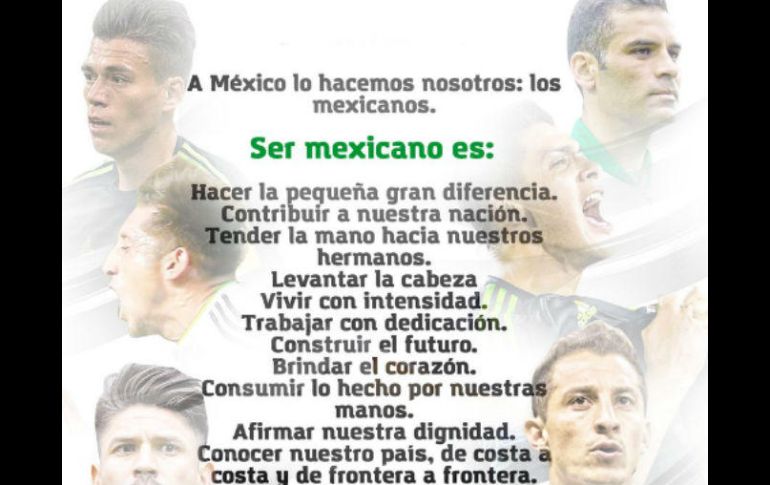 GUADALAJARA, JALISCO (20/MAR/2017).- La Selección Mexicana convocó a sus aficionados a la unidad y el orgullo, con miras a los partidos que tendrá este mes.El Tri lanzó su campaña con etiquetas como "#Incondicionales" y "#HechoenMéxico", con un mensaje que llama a "hacer la pequeña gran diferencia", "consumir lo hecho por nuestras manos" y "tender la mano hacia nuestros hermanos".La Selección Mexicana recibirá el viernes a Costa Rica en el Estadio Azteca y luego, el martes 28, visitará a Trinidad y Tobago.Junto con eso, jugadores como "Chicharito" Hernández invitaron a sus seguidores en redes sociales a no perderse los dos juegos, y prometieron "sorpresas" para empezar con el partido del viernes.
