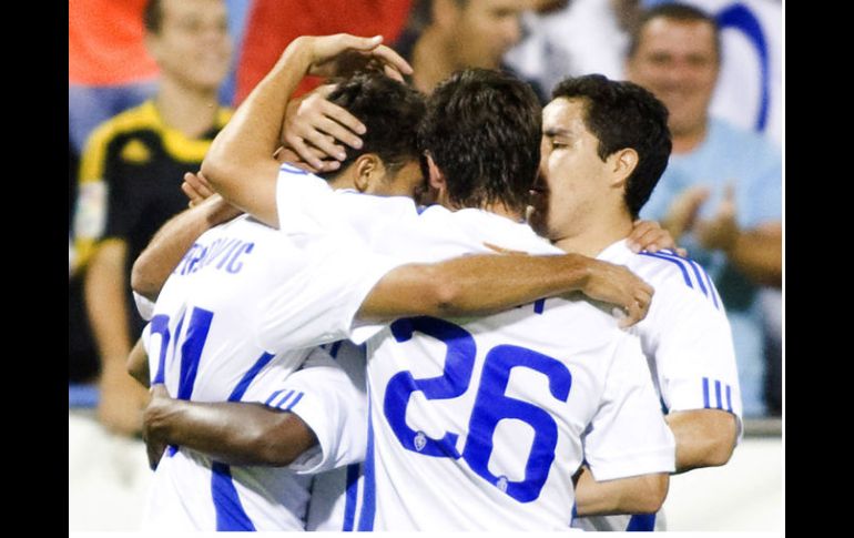 Deportes | El desempate del marcador 1-1 le valió un trofeo al equipo del 'Vasco' Aguirre El Zaragoza se impone al Espanyol con penaltis El desempate del marcador 1-1 le valió un trofeo al equipo del 'Vasco' Aguirre Por: EFE 15 de agosto de 2011 - 17:24 hs Los jugadores del Real Zaragoza, celebran el primer y único gol del equipo maño antes de los penales.EFE / ZARAGOZA, ESPAÑA (15/AGO/2011).- El Real Zaragoza, que dirige el mexicano Javier Aguirre, se adjudicó el XLI Trofeo Ciudad de Zaragoza al superar al Espanyol, del argentino Mauricio Pochettino, en la tanda de penaltis tras acabar los noventa minutos empatados (1-1). Ambos equipos protagonizaron un enfrentamiento escaso de calidad a pesar de estar, salvo que la huelga lo impida, a cinco días del comienzo de la Liga. Los fallos del uruguayo Juan Albín y de Carlos Clerc desde los once metros permitieron al equipo aragonés volver a imponerse en su trofeo después de tres ediciones consecutivas sin lograrlo, aunque concluye su pretemporada sin conocer la victoria con dos derrotas y tres empates. El Espanyol se adelantó gracias a una falta lanzada por Javi Márquez desde 30 metros, que no acertó a desviar el exguardameta del Benfica Roberto, en el minuto 71, y doce después empató el serbio Ivan Obradovic. Ficha técnica: 1 - Real Zaragoza: Roberto; Juárez, Da Silva, Mateos (Lanzaro, min.76), Paredes (Joel Valencia, min.46), Abraham (Obradovic, min.67); Juan Carlos (Edu Oriol, min.57), Zuculini (Ortí, min.64), Ponzio, Lafita; y Braulio (Kevin Lacruz, min.64). 1 - Espanyol: Álvarez (Kameni, min.46); Javi López, Forlín, Moreno, Didac (Clerc, min.42); Gómez (Márquez, min.46), Baena, Rui Fonte (Albín, min.46), Verdú (Luna, min.80), Luis García (Sergio García, min.46) y Thievy (Cristian, min.69). Goles: 0-1. Min.71, Márquez; 1-1. Min.83, Obradovic. Tanda de penaltis: Por el Real Zaragoza marcaron Ponzio, Lafita, Obradovic y Juárez, y por el Espanyol Márquez, Sergio García y Cristian; fallaron Albín y Clerc. Árbitro: Delgado Ferreiro. No amonestó a ningún jugador. Incidencias: partido disputado en el estadio de La Romareda ante unos cuatro mil espectadores en noche muy calurosa y con terreno de juego en buen estado. Temas Futbol Español Javier Aguirre Espanyol Lee También Águilas vs Charros de Jalisco • Momentos Destacados • Juego 2 de la la serie inaugural de la LMP ¿Dónde ver EN VIVO el partido de J13 San Luis vs Atlas? México, entre países que han comprado más boletos para el Mundial 2026 ¿Dónde ver EN VIVO el partido de J13 Tigres vs Necaxa? Recibe las últimas noticias en tu e-mail Todo lo que necesitas saber para comenzar tu día Registrarse implica aceptar los Términos y Condiciones