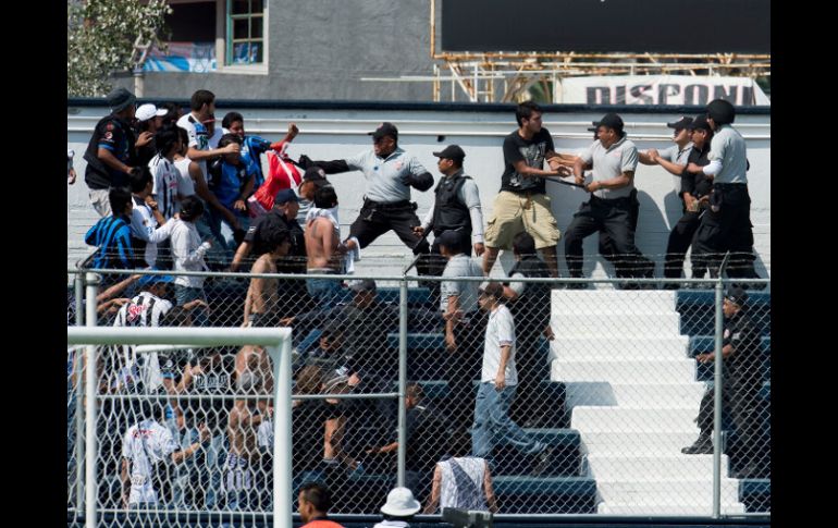 Deportes | Las porras tuvieron que ser dispersadas por la policía local ante un enfrentamiento Enfrentamiento entre porras de Cruz Azul y Gallos Las porras tuvieron que ser dispersadas por la policía local ante un enfrentamiento Por: NTX 31 de agosto de 2013 - 21:02 hs La barra de Querétaro ingresó a la fuerza al estadio y fue sacada a golpes por la policía local. MEXSPORT / CIUDAD DE MÉXICO (31/AGO/2013).- Aficionados de Cruz Azul y Querétaro tuvieron un enfrentamiento previo al juego entre sus equipos hoy en el estadio 10 de Diciembre de Ciudad Cooperativa Cruz Azul, en Hidalgo, que tuvo que ser dispersado por la policía con el uso de gases lacrimógenos. La bronca inició momentos después de que seguidores de Gallos Blancos ingresaran al inmueble a la fuerza por una de las puertas y al encontrarse de frente con aficionados de la "Máquina" todo pasó de las agresiones verbales a los golpes, así como al lanzamiento de diversos objetos de un lado para otro, según reportes policiacos. El portal www.mediotiempo.com citó que Angel Carlos Benítez, recién nombrado secretario de Seguridad Pública de Tula, Hidalgo, aseguró que el uso del gas fue necesario para acabar con el choque entre los aficionados de ambos conjuntos, previo al partido que terminó con triunfo 2-0 a favor de los queretanos. El presidente de la Federación Mexicana de Futbol, Justino Compeán, indicó en su cuenta oficial de Twitter: "Lo que pasó en Jasso es responsabilidad de Cruz Azul FC, la Liga MX no tiene nada que ver en esto y el club será sancionado". Este partido, correspondiente a la jornada ocho del Torneo Apertura 2013 de la Liga MX se disputó hoy en el estadio 10 de Diciembre de Ciudad Cooperativa Cruz Azul, luego que autoridades gubernamentales solicitaron a la Liga MX que pospusiera este juego y el de Pumas de la UNAM-América. Esto último por no contar con policías suficientes para resguardar a los asistentes, ante la serie de manifestaciones de los integrantes de la Coordinadora Nacional de Trabajadores de la Educación en la capital del país. La directiva de Cruz Azul había propuesto las fechas de 29 de octubre y 6 de noviembre, pero la primera fue rechazada por Querétaro porque tenían partidos muy cercanos, y la del 6 de noviembre no la aceptó la Liga MX porque ese día será la final de la Copa MX, según informó Agustín Manzo, gerente de Formación Técnica de la "Máquina". Temas Futbol Mexicano Máquina del Cruz Azul Gallos Blancos de Querétaro Liga MX Apertura 2013 Lee También Atlas Femenil, al límite de sus opciones en el Apertura 2025 Chivas Femenil asegura su pase a la Liguilla por doceavo torneo consecutivo Selección Mexicana busca revancha y respuestas ante Ecuador Ivar Sisniega reveló que México tendrá partidos en Centroamérica Recibe las últimas noticias en tu e-mail Todo lo que necesitas saber para comenzar tu día Registrarse implica aceptar los Términos y Condiciones