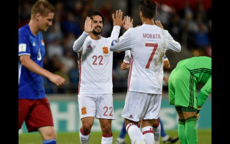 VADUZ, LIECHTENSTEIN (05/SEP/2017).- La Selección española firmó este martes en Vaduz su triunfo más amplio ante Liechtenstein (0-8), en un partido sin exigencia del rival, que encarriló desde los primeros compases y en el que se divirtió para sentenciar también la diferencia de goles respecto a Italia, lo que sella virtualmente su pase al Mundial 2018.Después de la intensidad que exigió el duelo con Italia en el Santiago Bernabéu, España encontró el partido más plácido posible ante el colista de grupo e impuso la abismal diferencia de calidad con actitud y hambre de goles.No se había cumplido el minuto 3 y ya marcaba la selección española con una falta lateral puesta por Silva que cabeceaba a placer Sergio Ramos.La humilde Liechtenstein que se llevó ocho de su visita a España pero perdía por un solo gol al descanso, en esta ocasión no pondría ninguna oposición en el primer acto.Julen Lopetegui apostó por defensa de tres ante la poca mordiente de una selección que nunca ha marcado a España en ocho partidos. El dominio fue absoluto, solo existió un equipo sobre el césped y la unión de jugadores de toque como Thiago, Iniesta, Isco y Silva invitó a la diversión.Capaz era el portero Jehle de realizar dos estiradas calcadas, a su lado izquierdo a disparos de Isco y Morata, como cometer una pifia monumental.Encajaba el segundo tanto al cuarto de hora en otro testarazo, de Morata a nuevo pase de Silva. Y un minuto después se hacía un lío con el balón en los pies para dejárselo a Morata que regalaba el tercero a Isco para que marcase a puerta vacía.El monólogo español era aplastante. Liechtenstein, en un dibujo 4-1-4-1, no encontraba la forma de defenderse. Ni hablar la opción de atacar. Solo dispuso de una ocasión por un resbalón de De Gea. Nunca estuvo tan cerca de marcar a España, pero Polverino disparó al bulto.El hambre de gol de Morata con el deseo de ganarse el 9 ante la ausencia de Diego Costa, se imponía en el duelo. Exigía al portero rival, acariciaba el tanto lanzándose a pase de Isco tras un taconazo de Pedro. Los defensas se aburrían tantos que Ramos se incorporaba al ataque y hasta Piqué se quedaba por momentos de delantero centro buscando el gol. Llegaba de nuevo con el sello de Silva, el mejor goleador de la 'era Lopetegui', con una falta a la escuadra.El abultado triunfo no hizo que España levantase el pie del acelerador. Sabían la importancia de cada gol para sentenciar el pulso con Italia y en la segunda mitad amplió distancia. Saltaron de inicio Nacho e Iago Aspas y no tardó en hacerlo Deulofeu.Morata estaba en todas. Remataba al travesaño en el quinto, que lo marcaba a puerta vacía Aspas aprovechando el rechace del portero rival; y firmaba el sexto a placer en la devolución del favor de Iago, con un bonito pase al espacio de primeras.La movilidad de las piezas ofensivas españolas nunca pudieron ser frenadas por el rival. No bajó los brazos Liechtenstein que luchó con honra hasta el final. Jehle detuvo algún intento más de Morata pero nada pudo hacer ante el segundo de Aspas, aprovechando un rechace del disparo de Pedro para recortar y fusilar.Ya en el tiempo de prolongación llegó el 0-8, obra de Göppel en propia meta tras un centro desde la derecha de Deulofeu para poner el broche a la goleada.