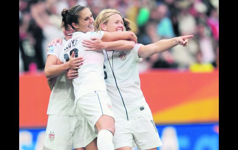 Deportes | La selección de las barras y las estrellas sella su pase tras derrotar 3-0 a Colombia Estados Unidos y Suecia avanzan en el femenil La selección de las barras y las estrellas sella su pase tras derrotar 3-0 a Colombia Por: EFE 3 de julio de 2011 - 05:12 hs Las estadounidenses festejan uno de los tres goles que le anotaron ayer a Colombia. NTX / BERLÍN, ALEMANIA (03/JUL/2011).- Los combinados nacionales de Estados Unidos y Suecia consiguieron su clasificación a los cuartos de final del Mundial Femenil de Alemania 2011, y ahora solamente buscarán el liderato en la última fecha del Grupo C. Mediante sus dos victorias, norteamericanas y escandinavas ya superaron su primera prueba que era ubicarse en la siguiente ronda por encima de las norcoreanas y las debutantes colombianas. Estados Unidos selló su pase tras derrotar 3-0 a Colombia, en tanto que Suecia en forma menos espectacular venció por 1-0 a Corea del Norte para también clasificar a cuartos de final. Antes las estadounidenses sumaron sus primeros tres puntos tras derrotar 2-0 a las norcoreanas y las suecas hicieron lo propio 1-0 frente a las colombianas. Los próximos encuentros del Grupo D los protagonizarán Estados Unidos contra Suecia, donde se definirá al primer lugar del sector, mientras Corea del Norte y Colombia se medirán para tratar al menos de regresar a casa con un resultado positivo. Clasificación del Grupo C Equipo Pts. Dif. 1. Estados Unidos 6 +5 2. Suecia 6 +2 3. Corea del Norte 0 -3 4. Colombia 0 -4 Hoy toca el turno de brasileñas y noruegas Las selecciones de Brasil y Noruega buscarán su pase a los cuartos de final, cuando midan fuerzas en la cancha del Arena im Allerpark. En duelo correspondiente a la segunda jornada del Grupo D, amazónicas y nórdicas protagonizarán uno de los duelos más esperados en la ronda de grupos, ya que en la categoría femenil han demostrado ser potencia. Brasil, con la mejor jugadora del mundo en los últimos años, Marta, espera dar otro paso más hacia su principal objetivo que es consagrarse monarca del mundo, algo que le falta para confirmar su grandeza. Hoy por TVAustralia vs. Guinea 7:00 horas •Sky 510 Brasil vs. Noruega 11:15 horas • Sky 510 Temas Futbol Internacional Mundial Femenil Alemania 2011 Recibe las últimas noticias en tu e-mail Todo lo que necesitas saber para comenzar tu día Registrarse implica aceptar los Términos y Condiciones