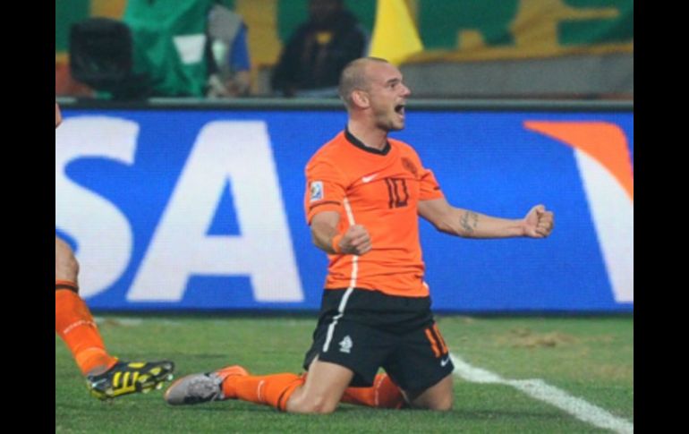 Deportes | Wesley ha logrado anotar cuatro goles en cinco partidos FIFA da los dos goles a Sneijder Con sólo rozar el balón con la cabeza se ha declarado al holandes como autor del primer gol con el que empezaron a forjar la victoria Por: AP 3 de julio de 2010 - 08:28 hs De esta manera festejo el holandes Wesley Sneijder el primer gol a favor de su Selección AFP / JOHANNESBURGO, SUDÁFRICA (03/JUL/2010).- Wesley Sneijder recibió el crédito por el primer gol de Holanda en el triunfo 2-1 sobre Brasil en los cuartos de final de la Copa del Mundo y llegó a cuatro dianas en el torneo. Un centro de Sneijder a los 53 minutos apenas rozó la cabeza de Felipe Melo y entró al arco en el partido del viernes en Port Elizabeth. Originalmente, fue declarado un autogol del volante brasileño. La FIFA determinó el sábado que el centro iba con dirección a gol y debe ser otorgado a Sneijder, quien también marcó de cabeza a los 68 minutos para darle el triunfo a los holandeses. Sneijder tiene cuatro goles en cinco partidos, para quedar empatado en la cima de la tabla de goleadores con el argentino Gonzalo Higuaín, el español David Villa y el eslovaco Robert Vittek. Higuaín y Villa juegan el sábado en los cuartos de final contra Alemania y Paraguay, respectivamente. Temas FIFA Mundial de Sudáfrica 2010 Selección de Holanda Lee También La sinfonía teutona suena en Sinsheim Mbappé brilla en su regreso a París México vs Argentina: Estas son las posibles alineaciones para el Mundial Sub-20 México busca frenar el paso perfecto de Argentina en Mundial Sub-20 Recibe las últimas noticias en tu e-mail Todo lo que necesitas saber para comenzar tu día Registrarse implica aceptar los Términos y Condiciones