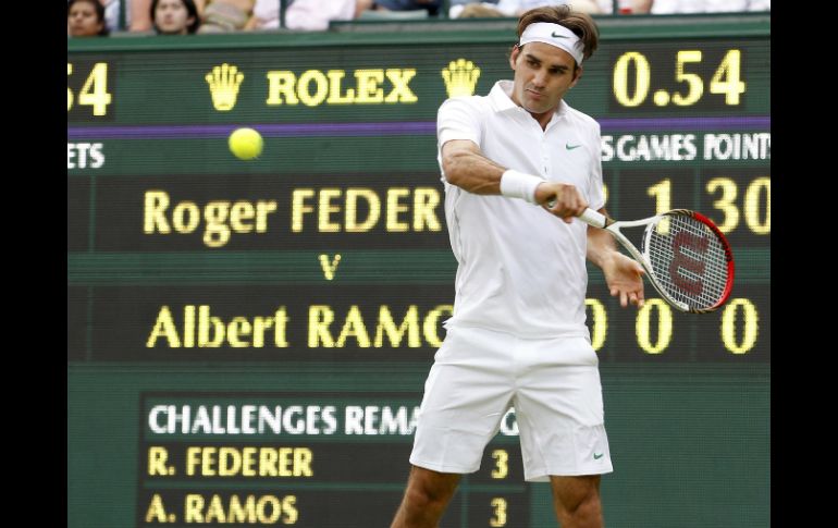 Deportes | El suizo no da opción al español Ramos en su debut en el torneo Federer avanza con fuerza en Wimbledon El suizo Roger Federer no da opción al español Ramos y lo vence por 6-1, 6-1 y 6-1 en una hora y 19 minutos en su debut en Wimbledon Por: EFE 25 de junio de 2012 - 11:37 hs LONDRES, INGLATERRA (25/JUN/2012).- El suizo Roger Federer, tercer favorito en Wimbledon, cumplió hoy con las expectativas y avanzó a la segunda ronda del torneo al imponerse con claridad al español Albert Ramos, 43 del mundo, por 6-1, 6-1 y 6-1 en una hora y 19 minutos. El suizo, que aspira este año a lograr su séptimo torneo en el All England Club cedió únicamente tres juegos ante un rival que se vio superado desde el primer minuto por el juego rápido y preciso del número tres. Federer, de 30 años, que ha comparecido 14 temporadas consecutivas en Wibmledon y ha levantado la ensaladera que distingue al campeón en 2003, 2004, 2005, 2006, 2007 y 2009, demostró en su debut en esta temporada que está dispuesto a plantear batalla a los dos principales favoritos: el serbio Novak Djokovic y el español Rafael Nadal. Tras disputar las semifinales en Australia y París este año, Federer aseguró antes de comenzar el torneo de Londres que se siente "en forma" para tratar de acabar en el All England Club con el dominio en el circuito de los actuales número uno y dos del mundo, que han copado las cuatro últimas finales de Grand Slam. Ramos, por su parte, comparecía por vez primera en Wimbledon a sus 24 años, tras disputar la primera ronda este año en el Abierto de Australia y en Roland Garros. Temas Tenis Roger Federer Wimbledon Recibe las últimas noticias en tu e-mail Todo lo que necesitas saber para comenzar tu día Registrarse implica aceptar los Términos y Condiciones
