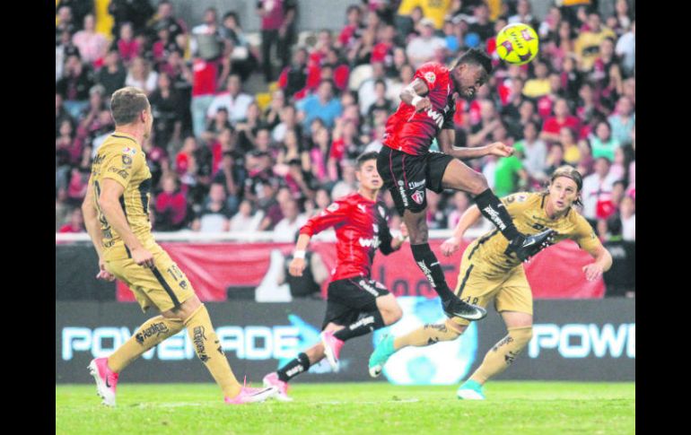 GUADALAJARA, JALISCO (13/ABR/2017).- El clima fue cálido, no sólo en el ambiente, sino en la tribuna y en la cancha. Atlas y Pumas brindaron un dramático encuentro en la grama del Estadio Jalisco, pero su mala puntería evitó que el marcador fuera más abultado y ambos equipos tuvieron que conformarse con el empate a un tanto, en duelo pendiente de la jornada 10 del Clausura 2017, mismo que hasta el momento pone a los Zorros en zona de clasificación con 19 puntos, que los sitúan en el séptimo lugar general.Pese a adueñarse del balón, los rojinegros no tuvieron la puntería necesaria para culminar el primer tiempo con el tanteador a su favor. La defensa de Pumas sufrió con los embates de Matías Alustiza, Clifford Aboagye y el mismo Martín Barragán, quienes fueron apoyados por los linderos mediante José Madueña y el “Hueso” Reyes.Tras varios intentos que no fructificaron, Atlas volvería a la carga por conducto de Alustiza. El argentino y encargado del ataque del conjunto tapatío causó estragos en la defensa auriazul, sacó un zurdazo con potencia, pero el arquero Saldívar estuvo atento, sacó la redonda con la pierna izquierda y dejó el balón a modo por aire, aunque Brayan Garnica no pudo rematar de buena manera.Tanto fue el cántaro al agua, hasta que se quebró. La Fiel rojinegra gritó el gol al minuto 15. El ghanés Clifford Aboagye se avivó al barrerse en el área chica cuando José García intentaba el despeje. El rojinegro empujó el balón a las redes. Antes de cantar este gol en la cuenta de los Zorros, Alustiza había dudado a la hora de disparar, incluso se estrelló con Barragán y con la marca encima sacó un ligero disparo de zurda que volvió a dejar vivo el portero de los Pumas, quien tuvo trabajo extra.Pese al dominio del conjunto local, Pumas ajustó en la media cancha y comenzó a generar el juego por el costado izquierdo con Alan Mendoza y Javier Cortés como principales artífices. Fue el mismo Mendoza quien generó la jugada del empate para los visitantes. Tras correr hasta la línea de fondo, sacó un centro raso que Matías Britos llegó a empujar el balón al anteponerse a quienes lo marcaban. Al 28’, el marcador se igualó.Para el segundo tiempo, el encuentro se mantuvo en un ritmo frenético.Ambos equipos se aproximaron con peligrosidad al último sector de terreno. Saldívar se convirtió en figura de Pumas al evitar la caída de su meta por lo menos en tres ocasiones de claridad para los rojinegros, al igual que Verón, quien estuvo atento en dos oportunidades para intervenir y evitar el último y fulminante remate que hubiera dado el triunfo a los de casa.No fue la noche del “Chavo”La barra coreó su nombre y fue aplaudido por todos, pero Matías Alustiza tuvo una noche para el olvido al fallar en su lucha por anotar.En cuatro ocasiones el “Chavo” vio frustrados sus intentos. Saldívar le sacó un tiro desde la media cancha y un mano a mano, un mal remate de cabeza sin marca y un disparo por un costado, fueron los fallos del argentino.LA FIGURAAlfredo Saldívar (Pumas) Tras el grave error del fin de semana que le costó la derrota a su equipo, el arquero de los Pumas correspondió a la confianza de su técnico con una gran actuación. Alfredo sacó al menos tres oportunidades claras de gol y preservó el empate.LA FRASE“Seguimos entre los primeros ocho, jugando cada vez mejor y este equipo tiene las condiciones para meterse a la Liguilla”.Leiton Jiménez, jugador de AtlasLEE EL MINUTO A MINUTO DE ESTE PARTIDO