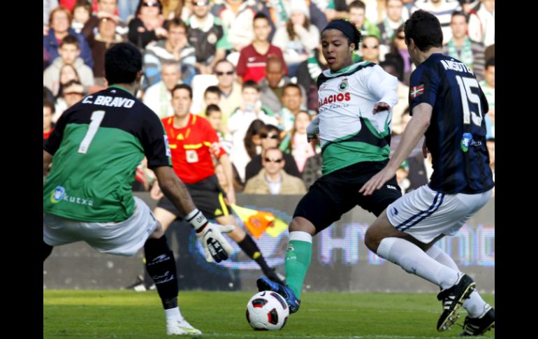 Deportes | El mexicano define el partido ante la Real Sociedad que termina 2-1 Giovani dos Santos le da la victoria al Racing El mexicano define el partido ante la Real Sociedad que termina 2-1 Por: SUN 21 de marzo de 2011 - 03:19 hs Giovani dos Santos dispara a puerta ante el portero de la Real Sociedad, Claudio Bravo (izq.). EFE / SANTANDER, ESPAÑA (21/MAR/2011).- El delantero mexicano, Giovani dos Santos, se convirtió en el héroe del Racing al anotar el 2-1 final ante la Real Sociedad, en partido disputado en el Estadio el Sardinero, de Santander, resultado que les permite alejarse de la zona de descenso. Giovani, quien fue titular y jugó todo el partido, marcó al minuto 77, al adelantarse a su marcador para barrerse y puntear el balón tras un tiro-centro de Domingo Cisma, quien había desbordado por la banda izquierda, para superar al portero Claudio Bravo y decretar el 2-1 final. El partido comenzó cerrado, con mucha pelea en medio campo, sin embargo, fue el Racing el que disponía de las mejores opciones para marcar, hasta que al 44’, Kennedy sacó un gran disparo desde afuera del área que pegó en un defensa y tomó una trayectoria imposible de detener para Bravo. Sin embargo, la Real Sociedad reaccionó en la segunda mitad y consiguió el empate al minuto 72, con una gran volea de Griezmann, quien prendió el balón dentro del área tras un centro de Xabi Prieto para batir al portero Toño, aunque, cinco minutos después, Giovani rompió la paridad. Dos Santos se mostró muy participativo durante todo el partido en el ataque del Racing, incluso, falló una opción clara al minuto 65, tras recibir un pase de Kennedy, pues recortó a Ansotegui y en el mano a mano echó la pelota por un lado. Sin embargo, su segunda opción no la malogró, y su oportuno remate a pase de Cisma dejó el 2-1 final, resultado que le permite al Racing llegar a 33 unidades y al mexicano tomar confianza de cara a los juegos amistosos que tendrá con la Selección mexicana ante Paraguay y Venezuela. Es el segundo gol de Giovani dos Santos con la camiseta del Racing de Santander; el primero lo había conseguido en el empate 2-2 contra Villarreal. Resultados de ayer en España Athletic Bilbao 0-1 Villarreal Deportivo Coruña 0- 1 Levante Hércules 0-4 Osasuna Málaga 2-0 Espanyol Racing Santander 2-1 Real Sociedad Sporting Gijón 1-0 Almería Valencia 0-1 Sevilla Tabla de posiciones Equipo Puntos Dif. Barcelona 78 +66 Real Madrid 73 +48 Villarreal 54 +18 Valencia 54 +09 Espanyol 43 -04 Athletic Bilbao 42 +03 Sevilla 42 0 Atlético de Madrid 39 +03 Mallorca 38 -08 Levante -09 35 Osasuna 35 +01 Real Sociedad 35 -09 Getafe 34 -06 Racing Santander 33 -15 Sporting de Gijón 32 -08 Deportivo La Coruña 31 -16 Real Zaragoza 30 -12 Málaga 29 -21 Almería 26 -18 Hércules 26 -22 Temas Futbol Español Futbol Internacional Giovani dos Santos Lee También México vs. Argentina: Hora de alzar el pecho La sinfonía teutona suena en Sinsheim Futbol hoy 11 de octubre de 2025: ¿Dónde ver los partidos en vivo? Mbappé brilla en su regreso a París Recibe las últimas noticias en tu e-mail Todo lo que necesitas saber para comenzar tu día Registrarse implica aceptar los Términos y Condiciones