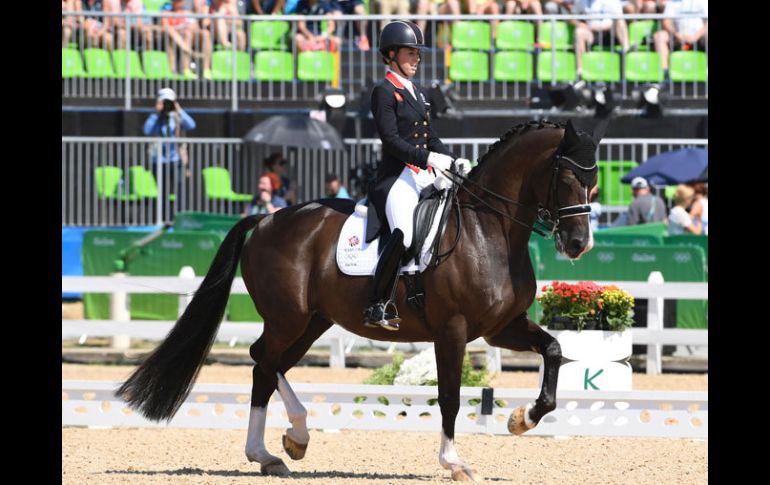 RÍO DE JANEIRO, BRASIL (15/AGO/2016) .- La británica Charlotte Dujardin se adjudicó hoy la medalla de oro en el adiestramiento individual, en la disciplina de adiestramiento de los Juegos Olímpicos Río 2016, al totalizar 93.857 puntos en el Centro Olímpico de la especialidad.En binomio con "Valegro", la británica dejó a las alemanas Isabell Werth, con "Weihegold Old", y Kristina Broring-Sprehe, con "Desperados FRH", con las preseas de plata y bronce, de manera respectiva, en esta prueba llamada Gran Premio Libre.Dujardin y "Valegro" acumularon puntuaciones de 85.071, 82.983 y 93.857 para un total de 93.857 en las tres fases que la integran, para quedarse con el metal dorado.En tanto, Werth y "Weihegold Old" marcaron tarjetas de 80.643 en el Grand Prix, 83.711 en el Grand Prix Special y 89.071 en el Grand Prix estilo libre, para un total de 89.071 y quedarse con la plata.Broring y "Desperados FRH" lograron puntuaciones de 82.257, 81.401 y 87.142 para el total de 87.142 que les dejó la presea de bronce.El jinete español Jesús Severo Jurado López y su corcel "Lorenzo", así como su compatriota Beatriz Ferrer-Salat y "Delgado", concluyeron en los sitios cinco y 10 de esta ronda final del Gran Premio Libre, de manera respecitiva.Resultados finales de la prueba de adiestramiento individual Gran Premio Libre:01. Charlotte Dujardin (GBR) Oro02. Isabell Werth (ALE) Plata03. Kristina Broring-Sprehe (ALE) Bronce04. Laura Graves (EUA)05. Jesús Jurado (ESP)06. Dorothee Schneider (ALE)07. Carl Hester (GBR)08. Tinne Wilhelmsson (SUE)09. Peter Minderhoud (HOL)10. Beatriz Ferrer (ESP)