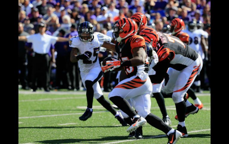 Deportes | Un recepción de 77 yardas fue la diferencia en el partido entre Cincinnati y Baltimore Green da la victoria a Bengalíes Un recepción de 77 yardas fue la diferencia en el partido entre Cincinnati y Baltimore Por: AP 7 de septiembre de 2014 - 15:09 hs Los Bengalíes dilapidaron una ventaja de 15 puntos antes de reaccionar. AP / BALTIMORE, MARYLAND (07/SEP/2014).- A.J. Green atrapó un pase de Andy Dalton, en una jugada de 77 yardas que terminó en la zona prometida a 4:58 minutos del final, y los Bengalíes de Cincinnati vencieron el domingo 23-16 a los Cuervos de Baltimore. Los Bengalíes dilapidaron una ventaja de 15 puntos antes de reaccionar. Green se colocó detrás del cornerback Chykie Brown, quien ocupó esa posición de improviso, en reemplazo del lesionado Lardarius Webb. El balón parecía escapársele al receptor antes de que lo controlara. Esa anotación, además de la conversión de dos puntos, llegaron apenas 48 segundos después de que Steve Smith, recién llegado a Baltimore, capturó un envío de 80 yardas de Joe Flacco para un touchdown. Tras la anotación de Green, Flacco llevó a los Cuervos hasta la yarda 16 de Cincinnati, antes de ser capturado en cuarto down, a 55 segundos del final. Mike Nugent convirtió cinco goles de campo para que los Bengalíes se fueran al descanso arriba por 15-0. Dalton completó 25 de 38 pases para 301 yardas por los Bengalíess, que pusieron fin a una racha de cuatro derrotas seguidas en Baltimore. Flacco se sobrepuso a una mala primera mitad para completar 35 de 65 envíos para 345 yardas, con un pase interceptado. Temas NFL Futbol Americano Cuervos de Baltimore Bengalíes de Cincinnati Lee También La generación dorada del 2005 se apaga con el retiro de Héctor Moreno Cruz Azul vs América • Momentos Destacados • Jornada 13 • Apertura 2025 Chivas vs Mazatlán • Momentos Destacados • Jornada 13 • Apertura 2025 México cae ante Corea del Norte en su debut del Mundial Sub-17 Femenil Recibe las últimas noticias en tu e-mail Todo lo que necesitas saber para comenzar tu día Registrarse implica aceptar los Términos y Condiciones