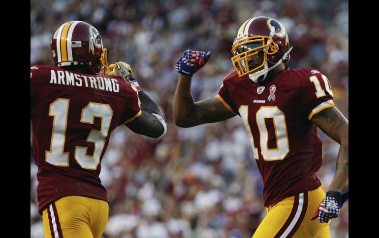 Deportes | Pieles Rojas ganan con 28-14 ante los Gigantes de NY Grossman conduce la victoria de Washington Pieles Rojas ganan con 28-14 ante los Gigantes de NY Por: AP 11 de septiembre de 2011 - 18:09 hs Jabar Gaffney (D), celebra su touchdown con Anthony Armstrong. AP / LANDOVER, MARYLAND (11/SEP/2011).- Rex Grossman completó el domingo 21 de 34 pases para 305 yardas y dos touchdowns y los Pieles Rojas de Washington abrieron la temporada con un triunfo de 28-14 sobre los Gigantes de Nueva York. En su primera titularidad en un juego de inicio de campaña desde el 2007, el veterano Grossman justificóal menos por una semana la decisión del entrenador en jefe Mike Shanahan de utilizarlo antes que a John Beck después de una contienda por el puesto de quarterback que duró toda la pretemporada. Grossman inició con cuatro pases incompletos, pero encontró a Anthony Armstrong para completar un envío de 18 yardas que preparó una carrera de una yarda de Tim Hightower para anotación. Grossman conectó más tarde nuevamente con Armstrong en pase de seis yardas para anotación y el seleccionado en la primera ronda de draft Ryan Kerrigan realizó un regreso de intercepción para touchdown en la segunda mitad. Eli Manning completó 18 de 32 pases para ganancia de 268 yardas sobre los Gigantes. Temas NFL Futbol Americano Gigantes de Nueva York Pieles Rojas de Washington Recibe las últimas noticias en tu e-mail Todo lo que necesitas saber para comenzar tu día Registrarse implica aceptar los Términos y Condiciones