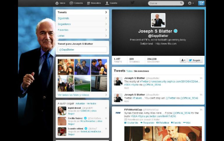 Deportes | La cuenta de Twitter de Joseph Blatter fue intervenida por varios minutos Hackean al presidente de FIFA La cuenta de Twitter de Joseph Blatter fue intervenida por varios minutos Por: EL INFORMADOR 22 de abril de 2013 - 12:40 hs Esta es la cuenta de Blatter, con mensajes ''incómodos''. ESPECIAL / GUADALAJARA, JALISCO (22/ABR/2013).- La cuenta personal de la red social Twitter del presidente de FIFA, Joseph Blatter, así como la de la Federación que rige el futbol mundial fueron ''hackeadas'' esta mañana. Los mensajes difundidos en el perfil de Blatter hablaban sobre los supuestos actos de corrupción cometidos por el dirigente, en relación a la elección de Qatar como la próxima sede de la Copa del Mundo de Futbol en el año 2022. "¿Y qué si acepté dinero del príncipe de Qatar? Yo le doy el pan a esa familia", "He recomendado al príncipe Ali Bin Al Hussein, de Jordania, para que sea mi sucesor", dicen algunos de los 'tuits'. En otro de los anuncios, se aprecia una fotografía con 'hashtags' (etiquetas) que tachan de ladrón y asesino a uno de los miembros de la familia real qatarí. El usuario @Official_SEA6, se hizo responsable de todo lo que apareció en el timeline del mandamás de FIFA. Tiempo después, la Federación dio aviso de que su cuenta también había sido manipulada. Temas FIFA Joseph Blatter Twitter Redes Sociales Recibe las últimas noticias en tu e-mail Todo lo que necesitas saber para comenzar tu día Registrarse implica aceptar los Términos y Condiciones