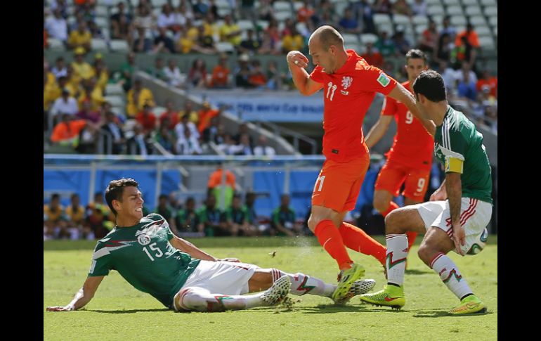 Deportes | El defensa del Tri sufre rotura de tibia de la pierna izquierda Héctor Moreno sale fracturado El defensa del Tri sufre rotura de tibia de la pierna izquierda Por: EL INFORMADOR 29 de junio de 2014 - 13:20 hs Esta fue la jugada en la que Moreno se lastimó. AP / FORTALEZA, BRASIL (29/JUN/2014).- El defensa de la Selección mexicana, Héctor Moreno fue reportado con una fractura de tibia luego de una acción en el minuto 47 del primer tiempo ante el delantero Arjen Robben de Holanda. En la acción, Robben entró al área y Rafael Márquez y Moreno intentaron frenar al holandés, el 15 de México se barrió con la pierna izquierda que hizo contacto con el pie del delantero y a partir de ahí ya no se pudo levantar. El jugador fue trasladado en camilla directo al hospital en donde se confirmó la lesión, en su lugar entró al partido Diego Reyes. La Comisión de Selecciones Nacionales informó que se pondrá en contacto con la directiva del espanyol de Barcelona para para definir dónde va a recibir la atención el futbolista sinaloense. Temas Futbol Internacional Selección mexicana FIFA Héctor Moreno Mundial Brasil 2014 Recibe las últimas noticias en tu e-mail Todo lo que necesitas saber para comenzar tu día Registrarse implica aceptar los Términos y Condiciones