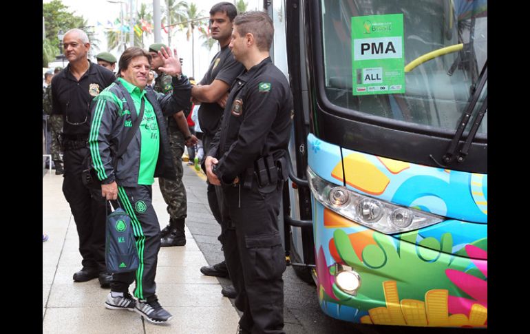 SANTOS, BRASIL (10/JUN/2014).- El seleccionador mexicano Miguel Herrera pronosticó un triunfo y un empate para el Tri en sus dos primeros duelos de la Copa del Mundo Brasil 2014.