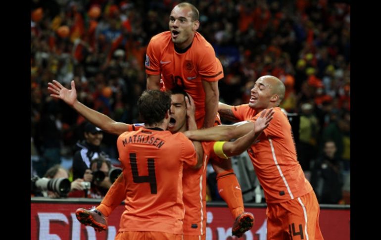 Deportes | Uruguay buscó pero fue superado con facilidad Holanda está en la final del Mundial El cuadro de la Oranje vence 3-2 a Uruguay para llegar a su tercera final de la Copa del Mundo Por: AP 6 de julio de 2010 - 14:23 hs Jugadores de la Selección de Holanda festejan luego de anotar contra Uruguay. AP / LEA EL MINUTO A MINUTO DE ESTE PARTIDO CIUDAD DEL CABO, SUDÁFRICA (06/JUL/2010).- Dos goles de Wesley Sneijder y Arjen Robben en un lapso de tres minutos le dieron el martes a Holanda una victoria 3-2 sobre Uruguay y el pase a su primera final de una Copa Mundial desde 1978. El lateral izquierdo holandés Giovanni van Bronckhorst, de 35 años y quien se retirará después del Mundial, abrió la cuenta con un remate desde casi 30 metros a los 18 minutos y Diego Forlán selló un empate transitorio a los 41, con otro disparo desde fuera del área. El duelo se decidió en un abrir y cerrar de ojos promediando el complemento, cuando Sneijder anotó su quinto gol del torneo a los 70 con un tiro desde unos 15 metros que pasó entre varias piernas y Robben, quien casi no se había visto, marcó el tercero tres minutos después de cabeza. Maximiliano Pereira anotó el segundo de Uruguay a los 92. Holanda, que ha ganado sus seis partidos, enfrentará en la final al vencedor del choque del miércoles entre España y Alemania. Será la tercera final de Holanda en un Mundial. En las dos previas perdió contra Alemania, en 1974, y Argentina, en 1978. Sneijder alcanzó a David Villa en el primer lugar de la tabla de goleadores, ambos con cinco dianas. Forlán quedó con cuatro. Uruguay juega sin su goleador Luis Suárez, suspendido, y su capitán Diego Lugano, lesionado, y le costó cruzar la mitad de la cancha en el primer tiempo, en que Holanda tuvo más la pelota pero sin crear demasiadas jugadas de peligro. Hasta el tanto de Van Brockhorst, lo único digno de mención había sido un mal rechace de Fernando Muslera con los puños, que le dejó el balón servido a Dirk Kuyt. Su remate, no obstante, se fue a las nubes. Hacia el final del primer tiempo, Uruguay adelantó sus filas y Forlán empató con un zurdazo desde 25 metros. La pelota iba al medio, pero llegó viboreando y el arquero holandés Maarten Stekelenburg no pudo impedir que entrase. El complemento mantuvo la misma tónica, con un juego deslucido y pocas llegadas. Forlán volvió a hacerse ver con un tiro libre abajo, junto a un poste, que motivó una buena atajada de Stekelenburg y poco después Rafael van der Vaart, dejó escapar una buena ocasión en el otro arco. Muslera rechazó a medias su tiro desde dentro del área y Robben tomó el rebote y tiró alto. Las acciones transcurrían parejas cuando Sneijder se encontró con un balón dentro del área y sacó un derechazo que pasó entre varias piernas y terminó adentro. Quedó la duda de si Robin van Persie, otro que no gravitó durante el partido, estaba adelantado en esa jugada. Tres minutos después llegó el lapidario gol de Robben tras un centro de Kuyt. A seis minutos del final Robben regaló otro gol al definir mal un mano a mano con Muslera, quien se quedó con el balón. Segundo antes de la finalización del partido, con Uruguay jugado al ataque, Pereira anotó con un zurdazo cruzado desde 18 metros. Alineaciones: URUGUAY: Fernando Muslera, Diego Godín, Mauricio Victorino, Martín Cáceres, Maximiliano Pereira, Diego Pérez, Egidio Arévalo, Walter Gargano, Alvaro Pereira (Sebastián Abreu, 78), Edinson Cavani, Diego Forlán (Sebastián Fernández, 84). Técnico: Oscar W. Tabárez. HOLANDA: Maarten Stekelenburg, Khalid Boulahrouz, John Heitinga, Joris Mathijsen, Giovanni van Bronckhorst, Dirk Kuyt, Mark van Bommel, Wesley Sneijder, Demy de Zeeuw (Rafael van der Vaart, 46), Arjen Robben (Eljero Elia, 89), Robin van Persie. Técnico: Bert van Marwijk. Goles: Holanda, Van Bronckhorst (18), Sneijder (70), Robben (73); Uruguay, Forlán (41), MPereira (92) Amonestaciones: Holanda, Sneijder (30), Boulahrouz (78), Van Bommel (95); Uruguay, M. Pereira (21), Cáceres (29). Árbitro: Ravshan Irmatov (Uzbekistán). Estadio: Green Point, Ciudad del Cabo. Capacidad: 66 mil. Temas Mundial de Sudáfrica 2010 Selección de Uruguay Selección de Holanda Lee También Zague aseguró que "no existe calidad" en el futbol mexicano Nos quedamos con sensaciones cortas: Eduardo Arce Hay jugadores que no estuvieron a la altura: Javier Aguirre César Montes intenta justificar la goleada ante Colombia Recibe las últimas noticias en tu e-mail Todo lo que necesitas saber para comenzar tu día Registrarse implica aceptar los Términos y Condiciones